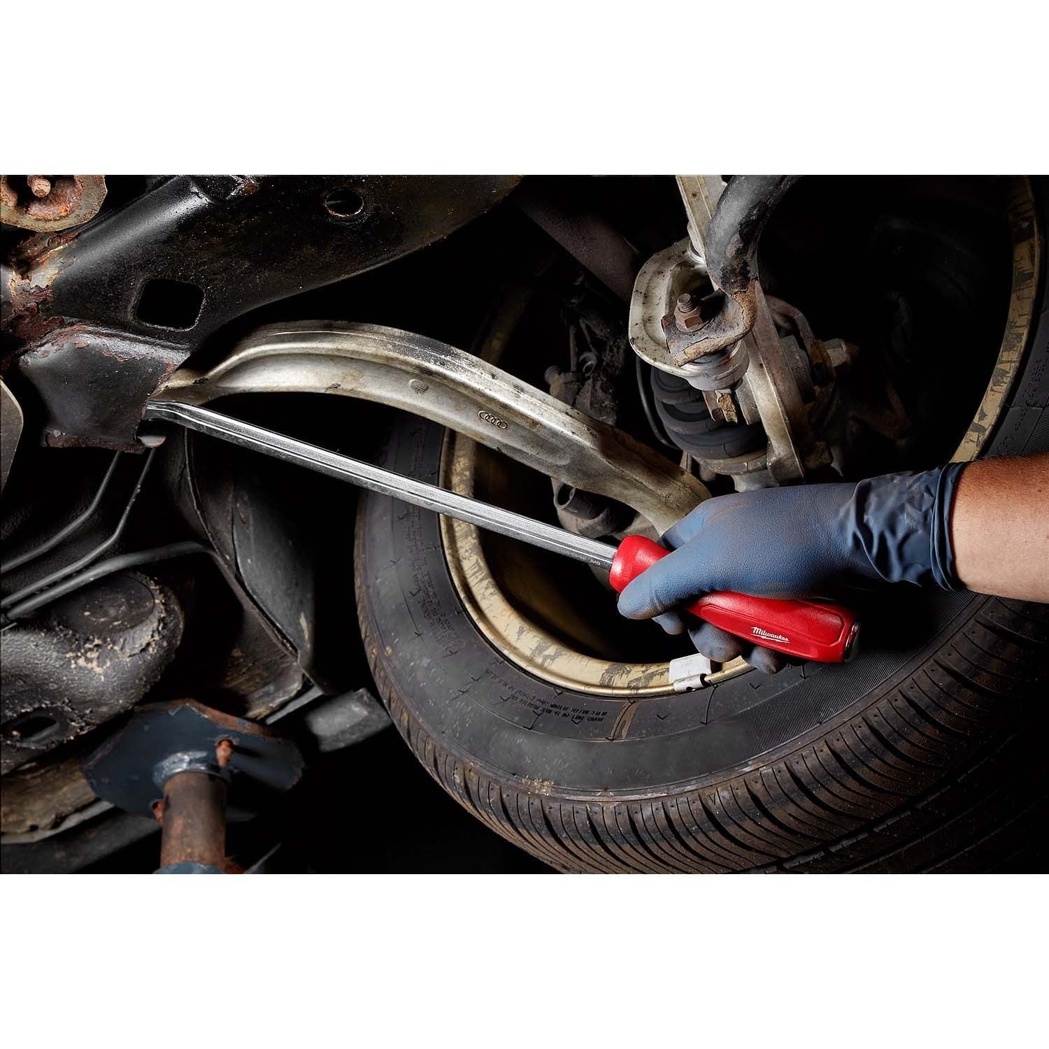 The MILWAUKEE 17pc Screwdriver & Pry Bar Set features screwdrivers with high-leverage handles and magnetic tips. The set also includes pry bars with an I-Beam shank for up to 40% more prying strength. Each screwdriver's bit type is marked on the tool's cap, allowing you to identify them for increased efficiency quickly. The comfortable tri-lobe handles will enable you to apply more leverage while using the screwdrivers comfortably, and magnetic tips help you hold screws in place while driving. The pry bar's all-metal core improves durability, allowing you to get the job done every time. A hammer-ready strike cap protects the tri-lob handle from damage and improves your ability to work in tight places. The durable reinforced tray features high-contrast EVA foam and easy-to-read size labeling for quick tool identification. The trays are designed for use in PACKOUT Drawer Tool Boxes (48-22-8444, 48-22-8443, 48-22-8442, 48-22-8447). Pry bars are covered by the Milwaukee Lifetime Guarantee. The Milwaukee Limited Lifetime Warranty backs screwdrivers.