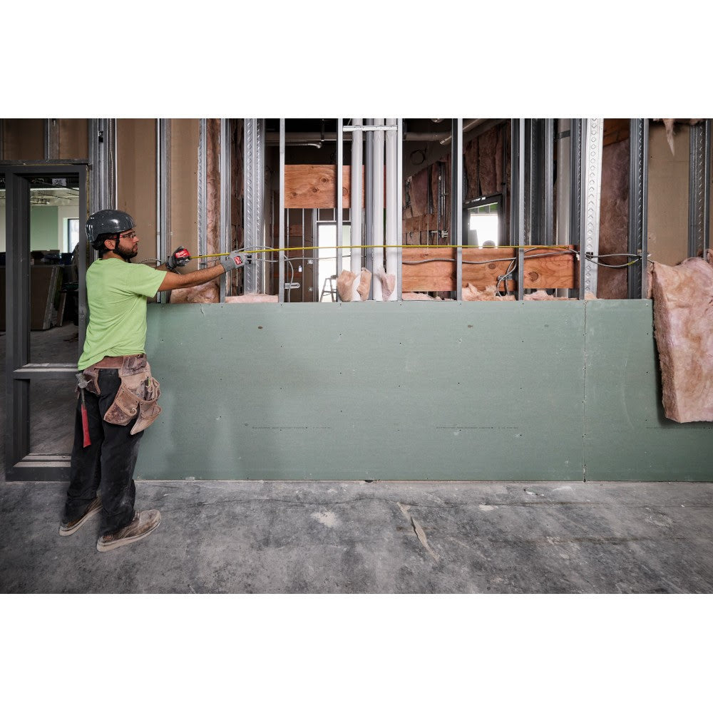Our 25ft Wide Blade Magnetic Tape Measure delivers the longest reach and straightest standout in the industry. 18’ of Reach and 15’ of Standout allows you to take long measurements on your own and reach further on the jobsite. The Wide Blade Magnetic Tape Measure features a finger stop for quick, controlled blade retraction and double-sided anti-tear coating that reinforces the first 6” of the blade. This tape measure is equipped with a low-profile magnet and large hook for improved top and bottom hook grab onto common jobsite materials, and double-sided printing for measuring in different orientations. Built to withstand the jobsite, this tape is equipped with a fully reinforced impact resistant body and a wire form belt clip to reduce pocket tearing.