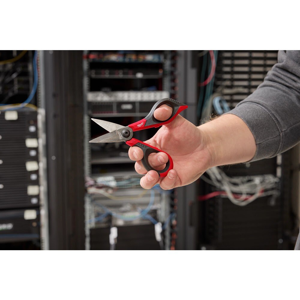The Milwaukee Kevlar Shears deliver easy cuts and strong Kevlar grip. The durable high-carbon stainless steel blades stay sharp and maintain blade durability while cutting through Kevlar(R), cabling, zip ties, and other materials. A non-slip, micro-serrated blade, keeps Kevlar(R) securely held in place while cutting. These shears also feature an ergonomic overmolded handle for better comfort. The Milwaukee Kevlar Shears are backed by Milwaukee’s Limited Lifetime Warranty.