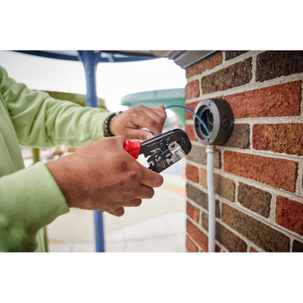 The MILWAUKEE Ratcheting Pass-Through Crimper & Stripper delivers easy, clean crimps as the pass-through blades trim excess conductors to eliminate unintended contact. Designed for installing RJ22 and RJ11/RJ12 modular and RJ45 PASS-THROUGH connectors, this tool is equipped with cutting blades and a stripping nest to reduce prep work time and eliminate the need to carry multiple tools. The full-cycle ratcheting mechanism with easy release ensures complete connector termination. Ergonomic grip handles reduce hand strain and allow users to crimp comfortably.