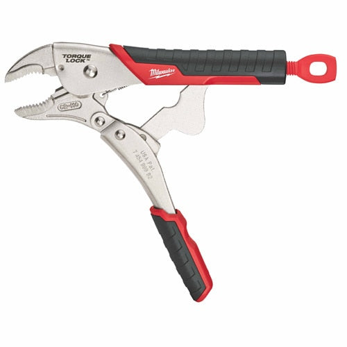 The MILWAUKEE® 10-inch TORQUE LOCK™ Curved Jaw Locking Pliers with Grip provides users with faster tool setup and more locking force. The locking pliers' unique thumb screw provides users with a more convenient geometry for hand force while providing clearance to generate more torque with the screwdriver through-hole design. The pliers are made from forged alloy steel for maximum durability with hardened jaws for increased gripping power, perfect for the toughest of jobsites. Milwaukee offers a Limited Lifetime Warranty with all locking tools.
