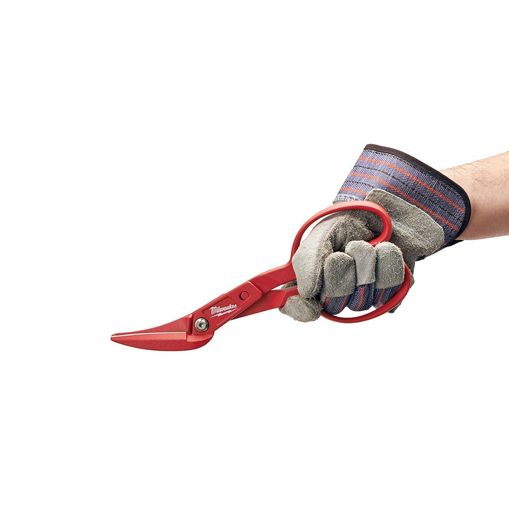 - Rust ResistantThe Milwaukee® Offset Compound Tinner is built for tough cuts through metal lathe and other materials using its unique compound mechanism, which give the user up to 2X more power per cut, requiring less effort. The 45-degree offset blades keep users hands away from the cutting material for greater cut clearance. The Offset Compound Tinner is equipped with 40% larger handles than traditional tinner snips and features Bolt-Lock Technology, which means the blades will not loosen from use. Milwaukee Tinner snip handles are a contoured, all-metal design so they are comfortable while wearing gloves and more durable than plastic coated tinner snips. All Milwaukee® tinner snips are forged for durability and long blade life.