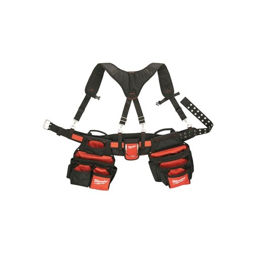 Milwaukee Work Gear is Nothing But Heavy Duty. Designed with the professional tradesmen in mind and Built with 1680Denier Nylon, Riveted Seams, and All Metal Hardware, Milwaukee work gear is up to 5X More Durable than competitive products and provides users with unmatched Durability, Comfort and Organization. The Contractor Work Belt w/ Suspension Rig provides users with 24 organizational pockets and incorporates handles that allow the belt to be easily removed, stored, and transported. A plastic lined puncture-resistant pocket allows users to store sharp objects, such as jab saws, without worry of damaging their bags and the included work belt is padded and breathable for all day comfort. The included suspenders feature a universal smart phone pocket and provide users with unmatched comfort while on the jobsite. This combination of extreme durability and functionality confirms Milwaukee’s commitment to providing innovative, durable solutions to the end user. - See more at: http://www.milwaukeetool.com/hand-tools/storage/48-22-8120#sthash.Nd2hqmhU.dpuf
