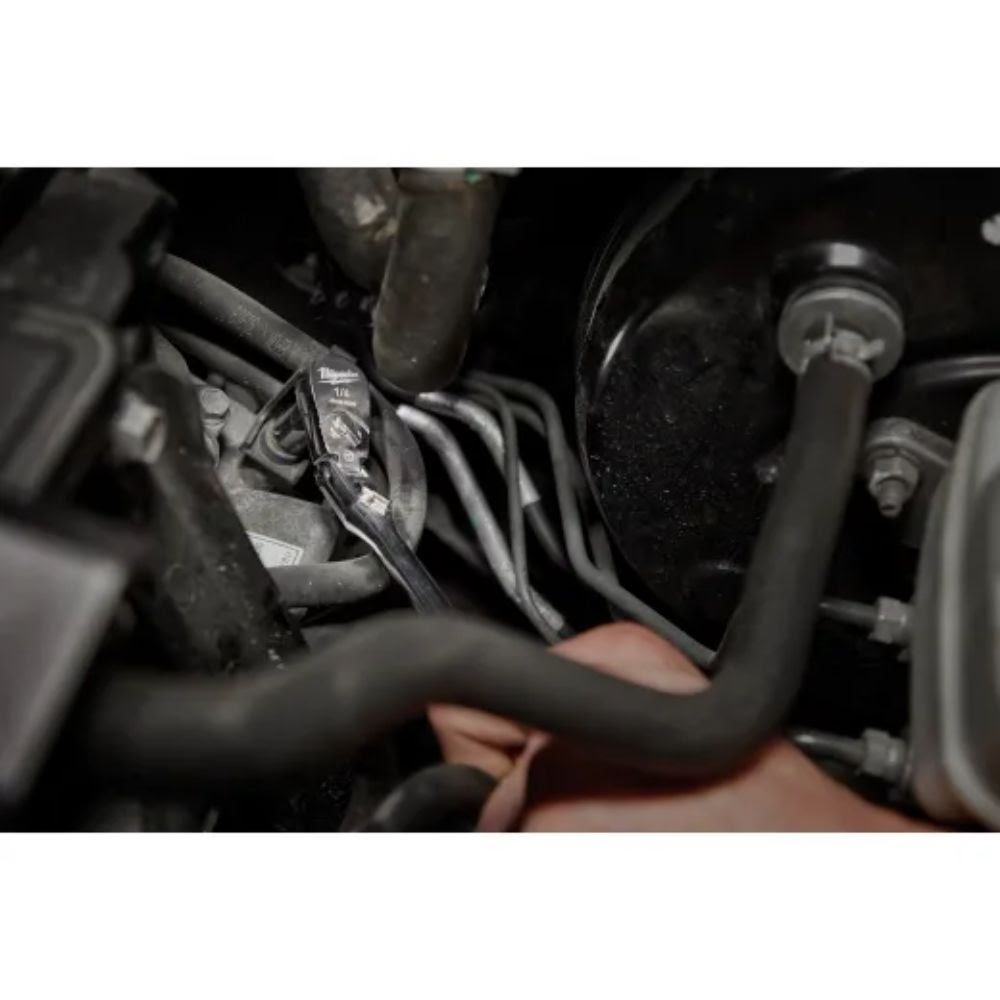 Our 1/4” Drive 9” Flex Head Ratchet with a 4? arc swing provides you with better access and is more adaptable to working in spaces with different angles. The ratchet head can be locked into 7 unique positions or left unlocked for free movement during use. The extended handle length offers you increased leverage for stubborn nuts and bolts while the slim profile and flush directional and locking levers offer more accessibility in tight spaces. The all-chrome finish makes cleaning the MILWAUKEE® extended handle flex head ratchet easy. We back this ratchet with our Mechanics Hand Tools Lifetime Guarantee.