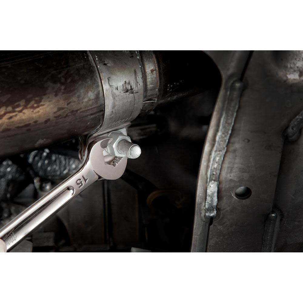 Our MILWAUKEE® 11 Piece Metric Combination Wrench Set delivers maximum torque and ultimate user comfort. Our MAX BITE™ Open-End Grip improves the wrench's grip on nuts and bolts, and the geometry reduces rounding and stripping. MAX BITE™ offers 25% More Torque than competitive wrench designs. The Comfortable I-Beam Handle Design allows superior user comfort, even while applying high torque. Our combo wrench sets feature Ink-Filled Size Labels for easy size identification and the quick distinction between SAE and metric sets. The 11 piece wrench sets come in a storage tray designed for Long-Term Storage, keeping your tool chest organized. Standing behind our products, Milwaukee offers a Lifetime Guarantee on all of our Combination Wrench Sets.