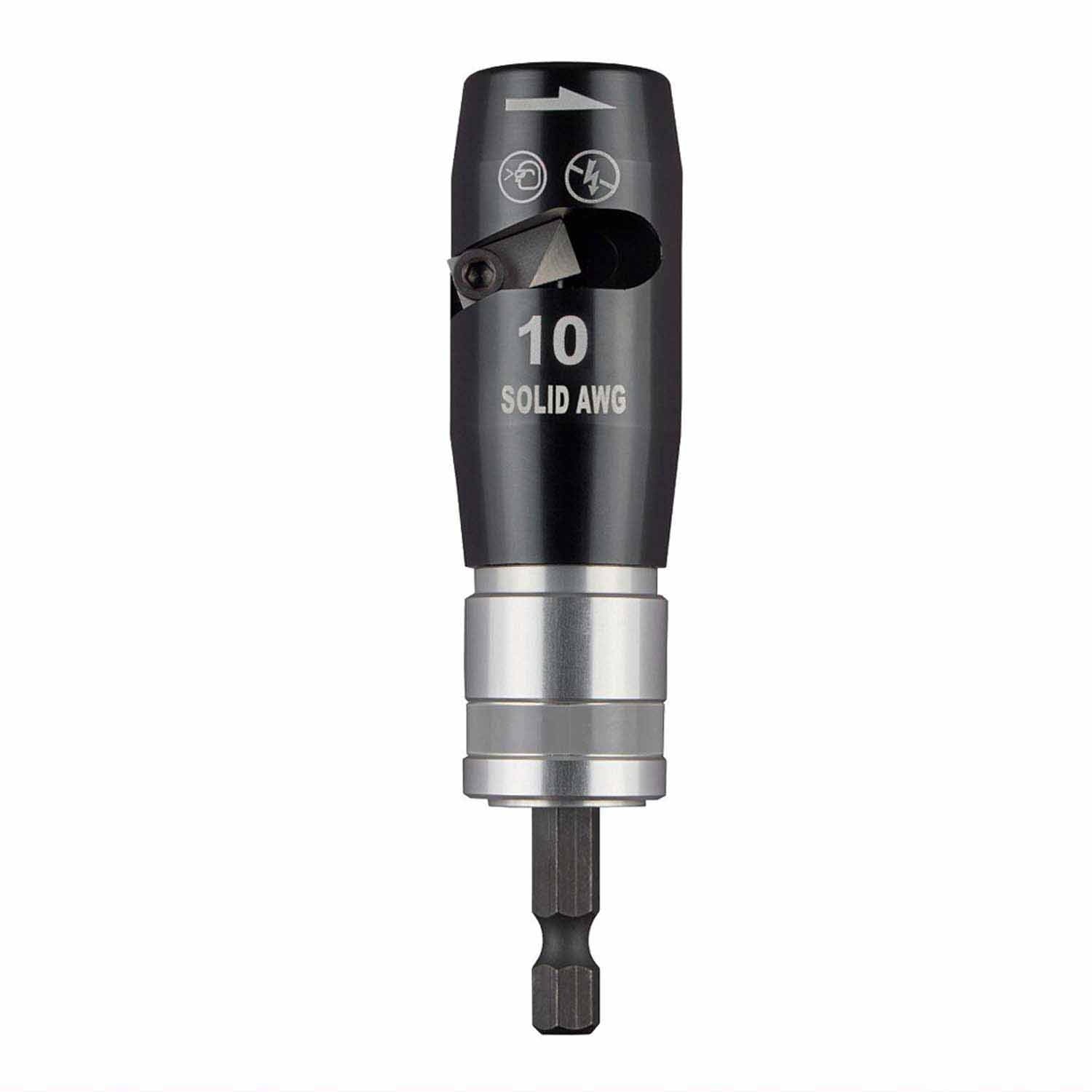 The MILWAUKEE Solid 10 AWG Wire Strippers deliver fast, clean stripping for 10 solid wire. The adjustable shank features convenient strip length markings, allowing for accurate, consistent strips ranging from ½” to 1-1/2”. The wire strippers feature color-coded rings for quick and easy wire gauge identification. The ¼” hex shank allows for use with Impact Drivers.