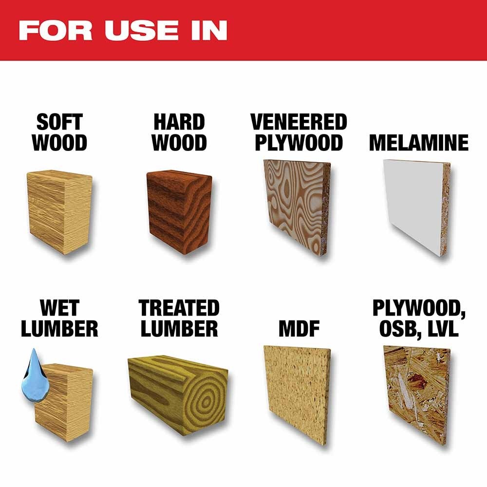 Milwaukee's wood cutting, fine finish blades provide cleaner cuts and cutting efficiencies to improve your productivity. An ATB tooth pattern minimizes tearout in the cut material. An anti-friction coating keeps the blade cool while cutting and resists corrosion & gumming. Laser cutting technology creates the blade from 100% sheet steel to ensure a stable blade that increases cutting accuracy. 12" blades are ring tensioned to further stablize the blade. Laser cut vibration slots minimize wobble and warping during use. A thin kerf design delivers faster cuts as well as more cuts per charge when using a cordless tool.