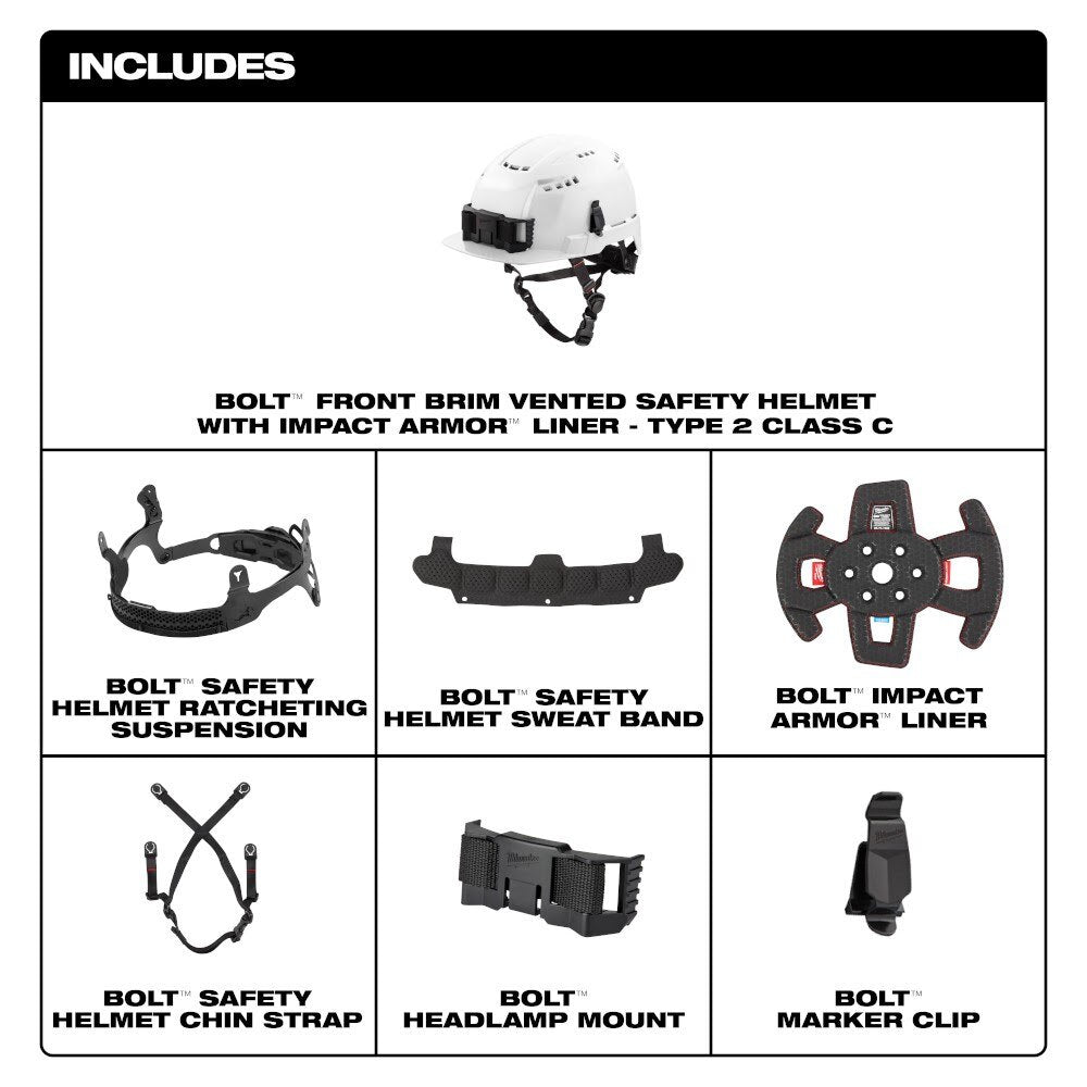 Milwaukee 48-73-1374 BOLT Black Front Brim Vented Safety Helmet with IMPACT ARMOR Liner (USA) - Type 2, Class C