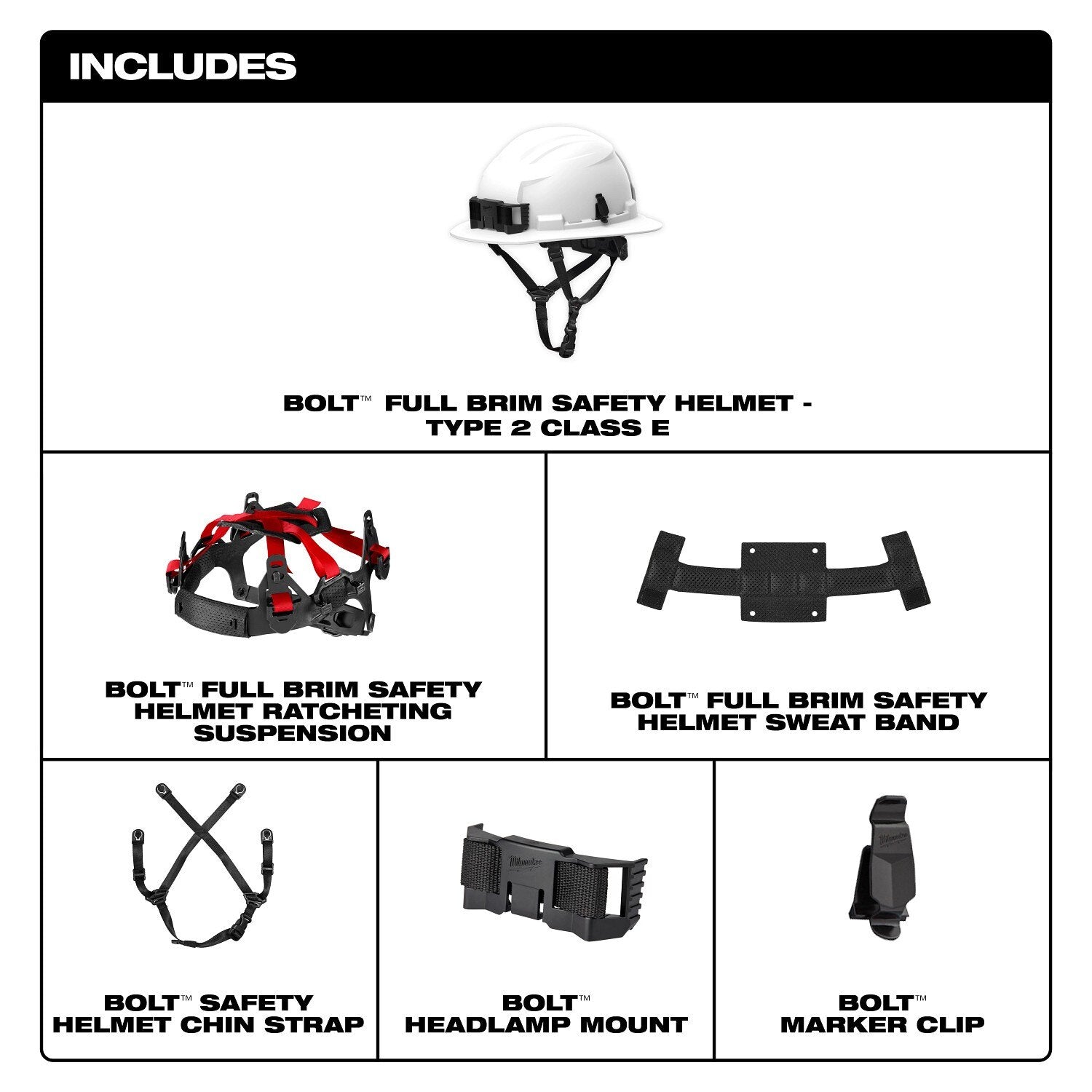The Milwaukee BOLT Orange Full Brim Non-Vented Safety Helmet offers advanced Type 2, Class E protection with a comfortable padded suspension, antimicrobial sweatband, and multiple accessory slots for enhanced jobsite safety and versatility.