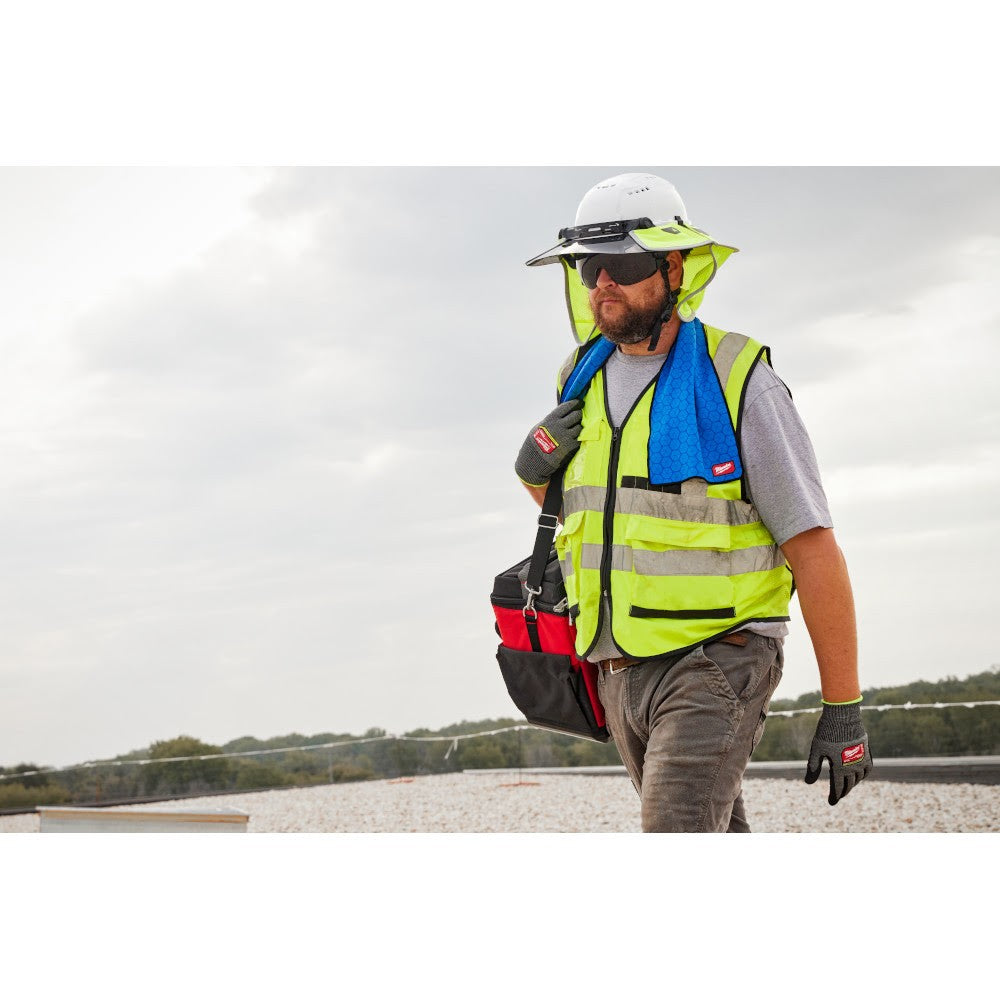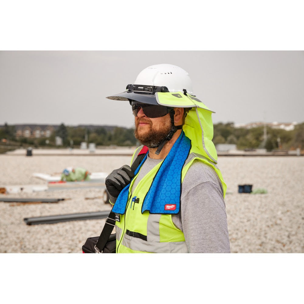 The MILWAUKEE Cooling Microfiber Towel is designed to be activated by water to keep you cool on the jobsite. This cooling towel can be quickly activated by running or submerging it under water for 30 seconds for full absorption. Wring out any excess water and repeat when dry. When activated, the cooling towel will wick away moisture and heat giving you up to 4 hours of cooling time. Designed to be worn in both indoor and outdoor environments, the comfortable microfiber material will provide you with long-lasting comfort.