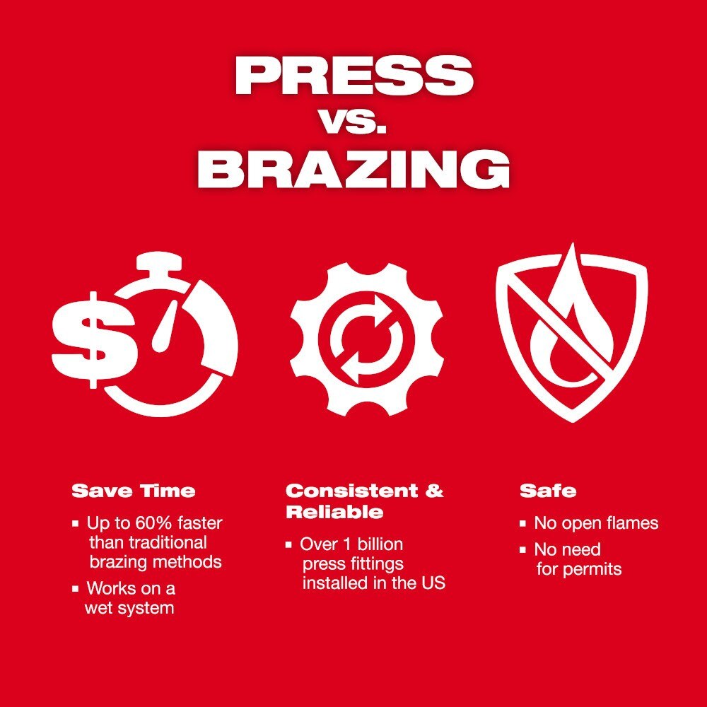 The MILWAUKEE Streamline ACR Press Jaws change the game in refrigerant line installations, offering you a flame-free, efficient alternative to traditional brazing. The jaws unlock productivity for HVAC system installers, eliminating nitrogen purges, combustible gases, and expensive silver solder necessary for traditional pipe connection methods. With an easy-open, in-line design, our press jaws are optimized for the tightest spaces, utilizing the M12 FORCE LOGIC Press Tool. The Streamline ACR Press Jaws are designed for use on Mueller Streamline ACR Press fittings.