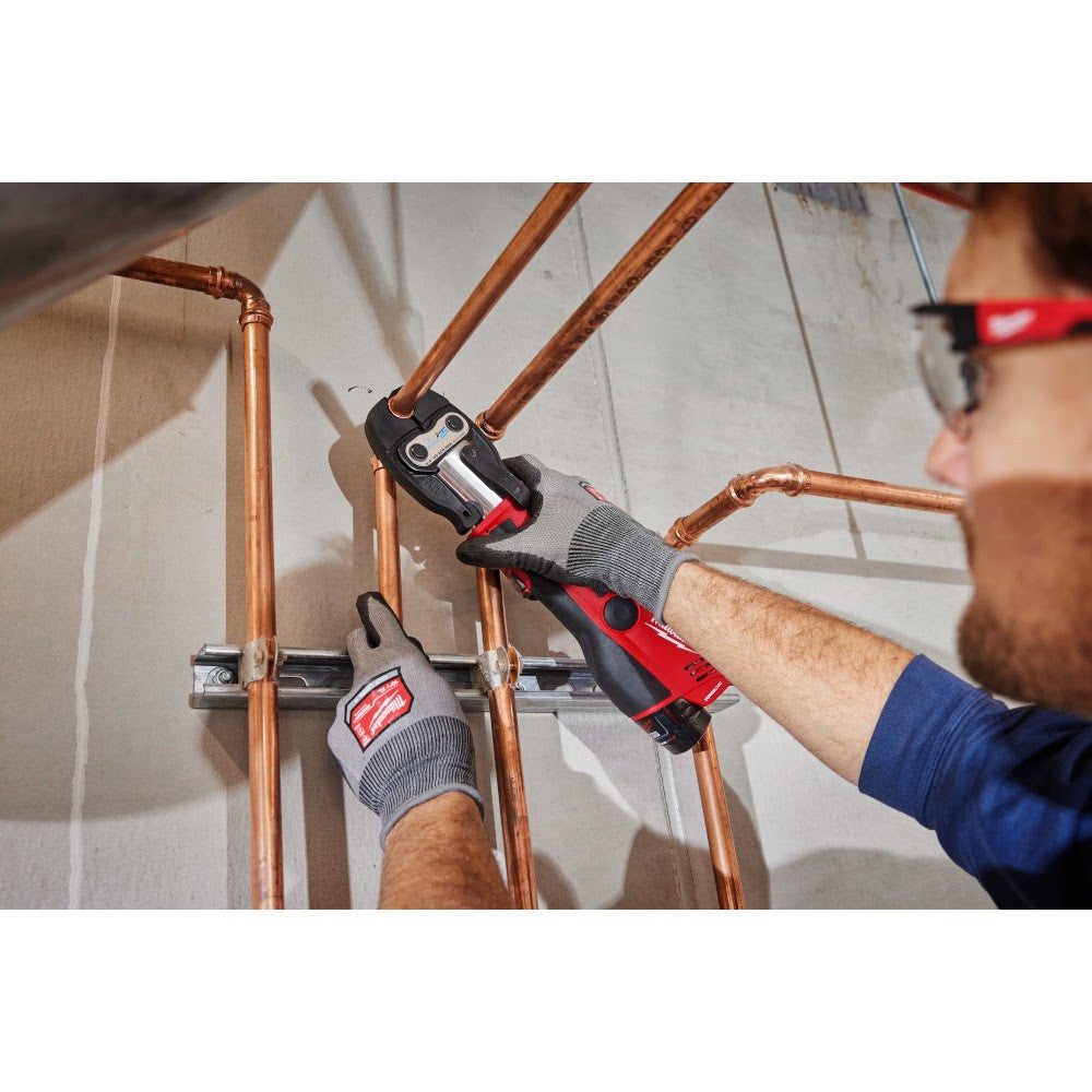 The MILWAUKEE 7/8" ZoomLock MAX Press Jaw is designed to press ZoomLock MAX Press Fittings and optimized for MILWAUKEE M12 FORCE LOGIC Press Tools. A flame-free alternative to traditional brazing, these ZoomLock MAX Press Jaws offer you up to 60% faster connections when installing high-pressure HVAC and refrigeration systems. The ZoomLock MAX Press Jaws eliminate the need for nitrogen purges, combustible gasses, and expensive silver solder necessary for traditional methods. We've optimized the press tool jaws with an easy-open, inline design for one-handed pressing when used with M12 FORCE LOGIC Press Tools, the smallest, most intelligent Milwaukee press tools.