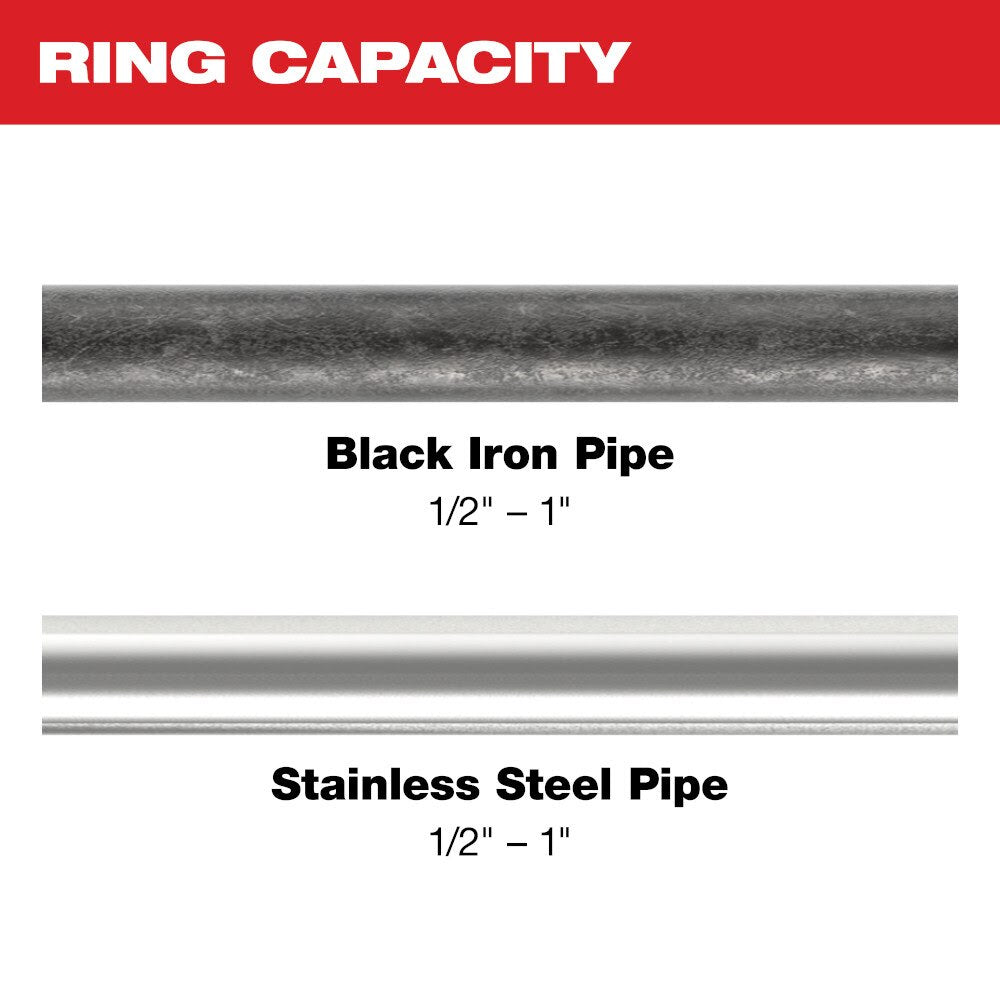 The MILWAUKEE 1/2" – 1” IPS-P Pivoting Press Ring Kit is designed for use with the M12 FORCE LOGIC Press Tool on Viega MegaPress, Apollo PowerPress and other press fitting systems. The IPS-P Pivoting Press Ring Kit is a more efficient alternative to welding and threading, enabling you to press connections on schedule 5 up to schedule 40 black iron pipe and 304/316 stainless steel pipe. Pivoting functionality delivers greater access in tight spaces when paired with the X3 Ring Jaw & M12 FORCE LOGIC Press Tool. Additionally, Milwaukee's press blocking system prevents improper ring and ring jaw mismatch providing peace of mind in quality connections. The 1/2" – 1” IPS-P Pivoting Press Ring Kit, combined with the ring jaw and in-line M12 FORCE LOGIC Press Tool, delivers unrivaled access in tight spaces and around installed pipes, providing you with controlled, flameless connections for unmatched productivity.