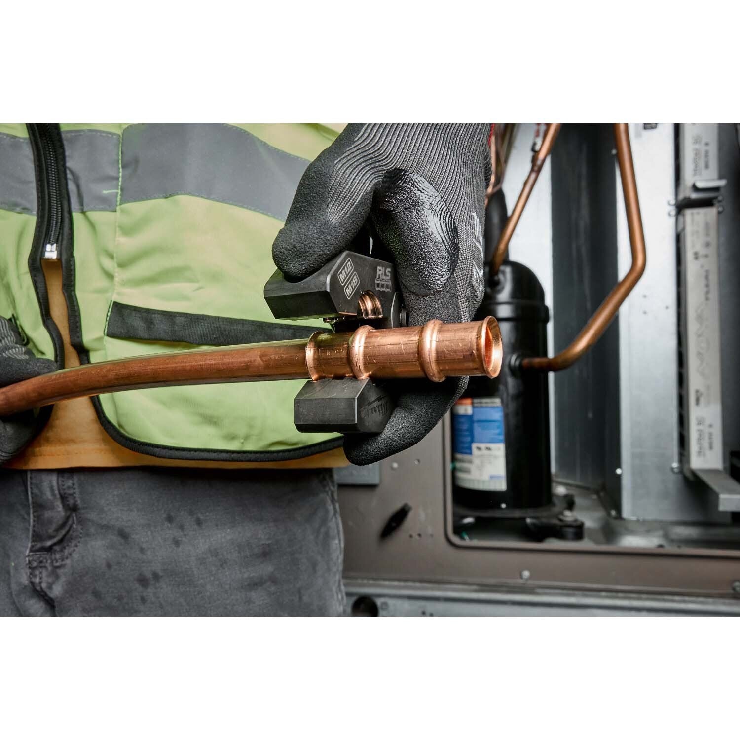 The MILWAUKEE ACR Pivoting Press Ring works with M18 & M12 FORCE LOGIC Press Tools to create controlled, flameless copper connections. Pivoting functionality improves access in tight spaces, and the press blocking system helps prevent ring and ring jaw mismatch for reliable results.