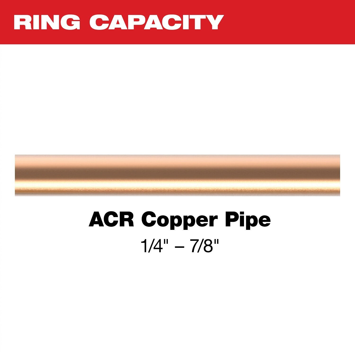 The MILWAUKEE ACR Pivoting Press Rings are designed for use with M18 & M12 FORCE LOGIC Press Tools. The ACR Pivoting Press Ring is a more efficient alternative to sweat and solder, enabling you to press connections on copper tubing. Pivoting functionality delivers greater access in tight spaces when paired with a compatible Milwaukee Ring Jaw and FORCE LOGIC Press Tool. Our press blocking system prevents improper ring and ring jaw mismatch, providing peace of mind in quality connections. The ACR Pivoting Press Rings, combined with a compatible Milwaukee Ring Jaw and in-line FORCE LOGIC Press Tool, deliver unrivaled access in tight spaces, providing controlled, flameless copper connections for unmatched productivity.