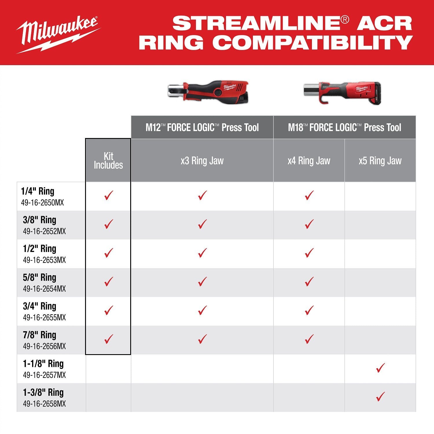 Milwaukee 49-16-2661MX 1/4" - 7/8" Streamline ACR Pivoting Press Ring Kit for M18 FORCE LOGIC Press Tool