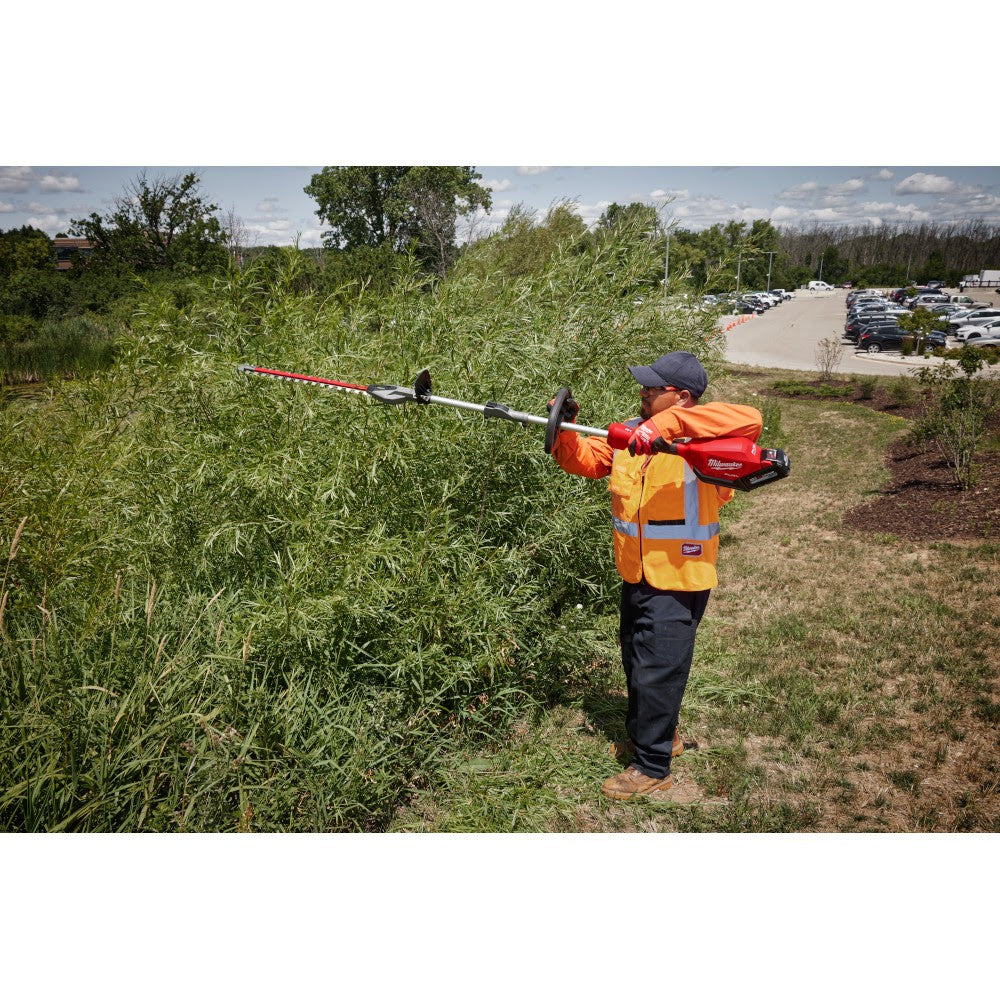 The MILWAUKEE M18 FUEL QUIK-LOK Hedge Trimmer Attachment is powered by the MILWAUKEE M18 FUEL Power Head w/ QUIK-LOK and is compatible with Milwaukee's split boom M18 FUEL QUIK-LOK Attachment System. This Hedge Trimmer Attachment clears more branches up 3/4" in a single pass during seasonal pruning and shaping applications. The Hedge Trimmer Attachment features a tip guard preventing damage to blades and the surrounding work area increasing productivity and decreasing maintenance time. The M18 FUEL QUIK-LOK Attachments feature protective drive shafts for increased durability against drops and while in storage. This split boom Hedge Trimmer Attachment also utilizes M18 FUEL Technology combined with optimized gearing to manage the RPM output specifically for hedge trimming applications. The M18 FUEL QUIK-LOK Attachment System features 13 different attachments for a wide array of applications to stay productive through all seasons.