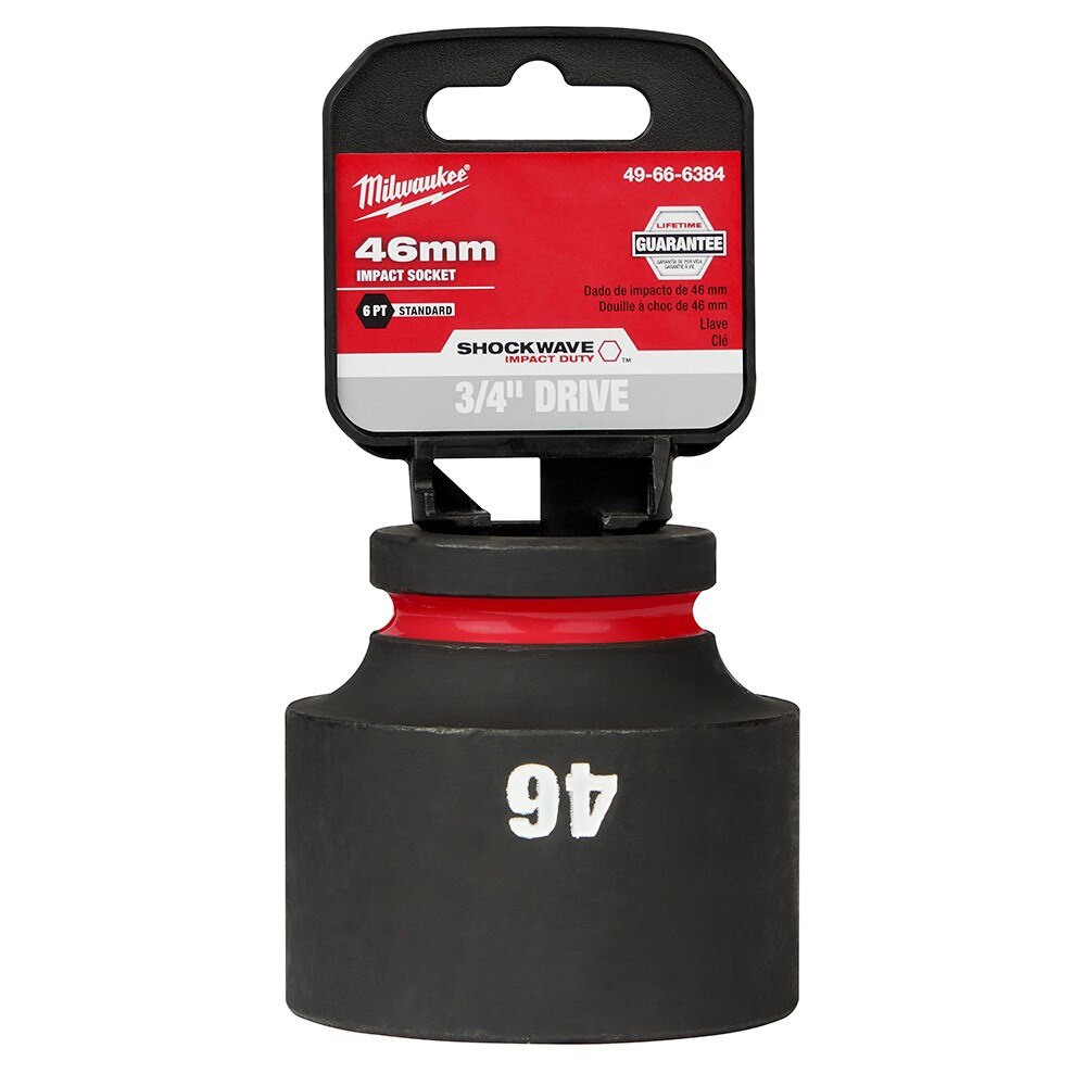 The MILWAUKEE® SHOCKWAVE Impact Duty™ 3/4" Drive 46MM Standard 6 Point Socket features the boldest, longest-lasting markings and extreme impact durability in high torque applications. The stamped and ink-filled size marking enables an accurate socket selection every time throughout the life of the socket. Engineered with high-strength forged steel for optimized performance in heavy-duty applications, and a non-slip hex geometry prevents fastener rounding. The dual-hole design and ring groove allow for easy socket attachment and removal. All SHOCKWAVE Impact Duty™ Sockets are backed by a Lifetime Guarantee and meet ASME industry standards. Compatible with optional Retaining Ring (49-66-6744).