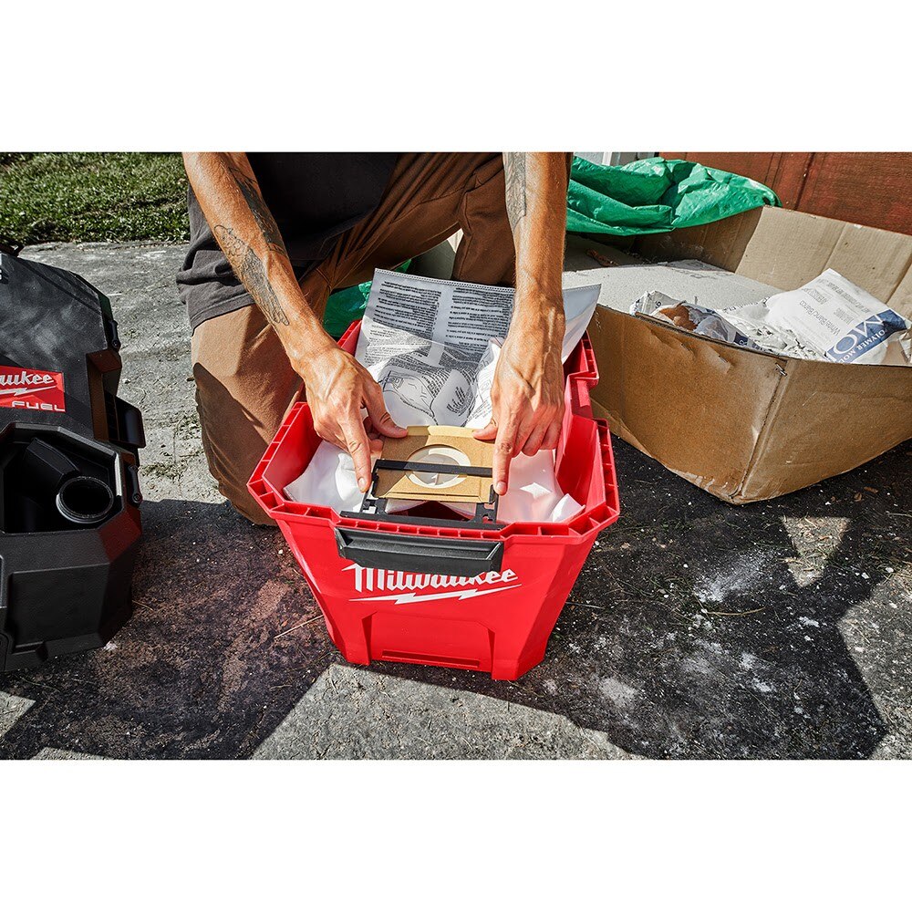 The MILWAUKEE Fleece Dust Bags (5PK) are compatible with the Milwaukee M18 FUEL 6 Gallon Wet/Dry Vacuum (0910). With 98.5% filter efficiency, these disposable fleece dust bags are ideal for fine dust collection. The vacuum cleaner dust bags are fully enclosed and act as a pre-filter to prolong filter life and are easy to dispose of with the pull tab to prevent dust from escaping