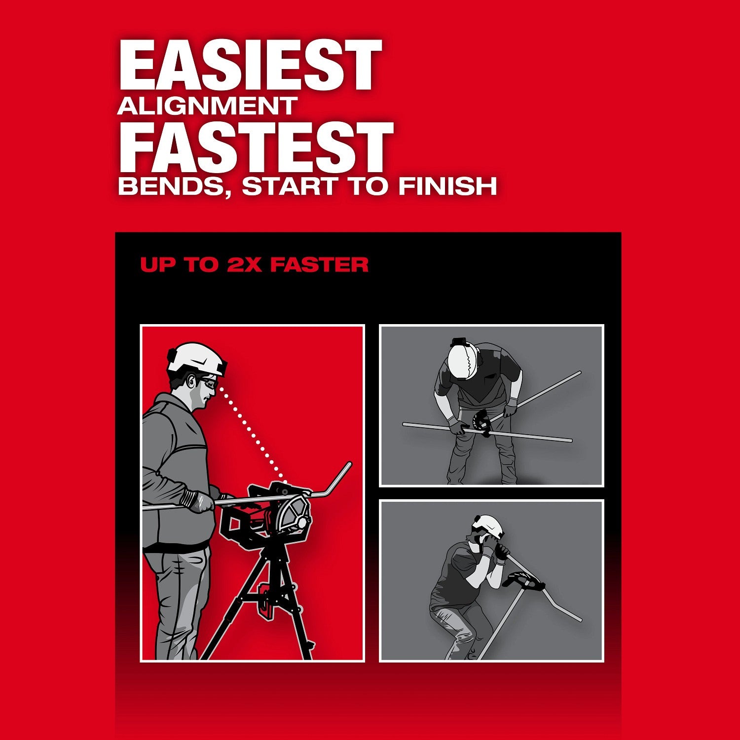 The MILWAUKEE M18 FUEL Branch Conduit Bender w/ AUTO-ZERO is the industry's first portable cordless conduit bender, explicitly designed for commercial and industrial electricians' branch installations. The tool's capacity and portability are optimized for branch installations up to 1" EMT and ¾" RMC, enabling bends to be done at the point of installation, allowing electricians to work anywhere. The M18 FUEL Branch Conduit Bender delivers the fastest bends from start to finish. The optimal working height of the tool and the shoe and backformer orientation keep critical layout points and bend planes easily visible from a single, ergonomic working position. The M18 FUEL Branch Conduit Bender takes bend consistency to another level, with AUTO-ZERO technology sensing 0º automatically on every bend, delivering unrivaled bend accuracy from pipe to pipe and over the tool's life. These fundamental changes to the bending process revolutionize productivity for multi-raceway installations, reduce rework, and require up to 10X less peak muscle effort in lower back muscles vs hand bending. The POWERSTATE brushless motor and M18 REDLITHIUM batteries supply the power and runtime to bend all day with an XC5.0 Battery Pack (sold separately) delivering up to 110 bends on 3/4" EMT Conduit. The Bender features REDLINK PLUS Intelligence, the most advanced Cordless Power tool electronics system for maximum performance.