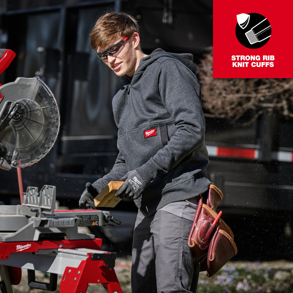 Part of the MILWAUKEE GRIDIRON Collection, the GRIDIRON Full-Zip Hoodie is BUILT TO SURVIVE. Constructed with a tear and abrasion-resistant, cotton/polyester blend, this full-zip hoodie allows you to work hard without compromising comfort. The 400GSM, heavyweight fabric ensures superior warmth whether worn as a mid-layer or robust exterior layer. Its large, reinforced pockets protect high wear and tear zones to ensure your hoodie outlives the job. The Milwaukee GRIDIRON products are developed in collaboration with feedback from users across the trades through continuous jobsite research.