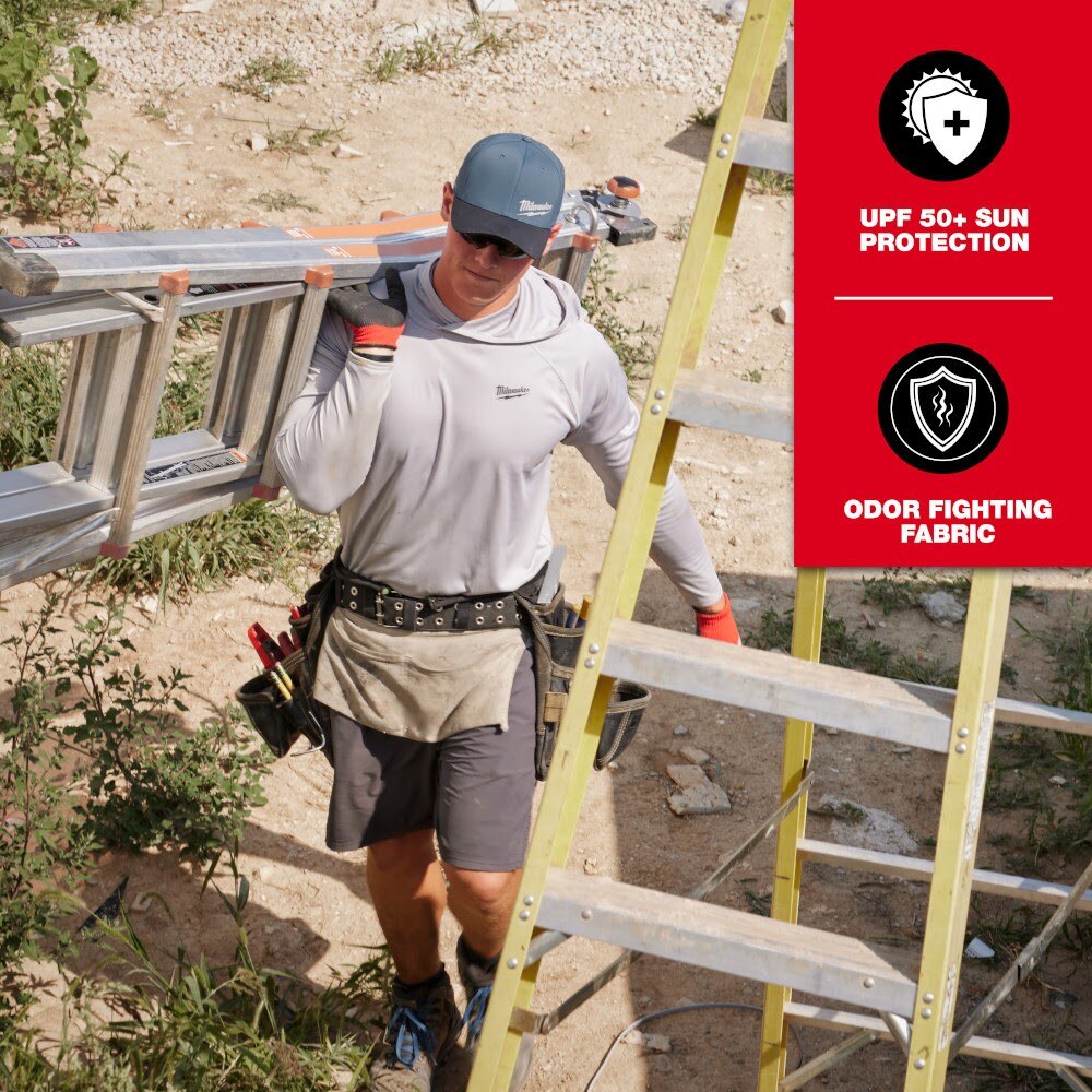 Part of the MILWAUKEE WORKSKIN Collection, the MILWAUKEE Hooded Sun Shirt is BUILT TO FIGHT SWEAT. Engineered with a custom sweat wicking fabric, the WORKSKIN Hooded Sun Shirt is designed to keep you dry and comfortable. Complete with UPF 50+ sun protection and odor fighting technology, this Sun Shirt is perfect for hot summer days on the job. Milwaukee WORKSKIN products are developed in collaborating with feedback from users across the trades through continuous jobsite research.