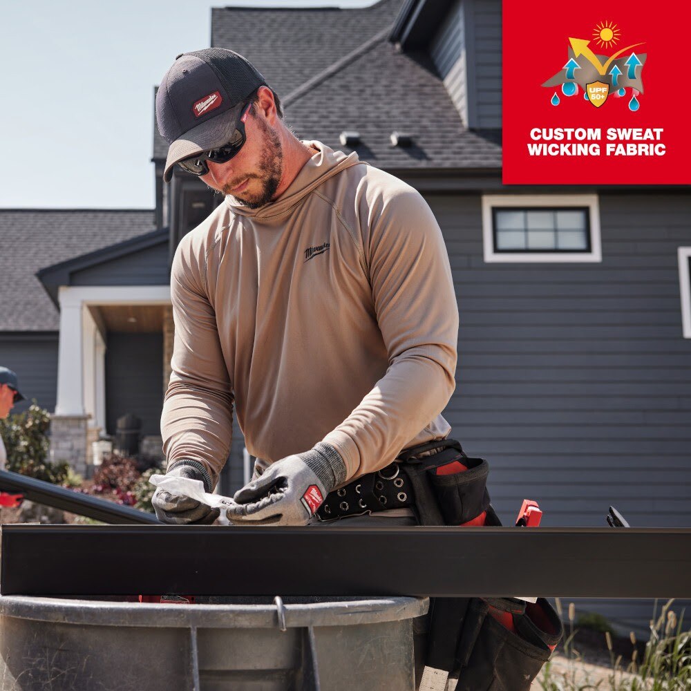 Part of the MILWAUKEE WORKSKIN Collection, the?Hooded Sun Shirt is BUILT TO FIGHT SWEAT. Engineered with a custom sweat wicking fabric, the WORKSKIN Hooded Sun Shirt is designed to keep you dry and comfortable. Complete with UPF 50+ sun protection and odor fighting technology, this Sun Shirt is perfect for hot summer days on the job. Milwaukee WORKSKIN products are developed in collaborating with feedback from users across the trades through continuous jobsite research.