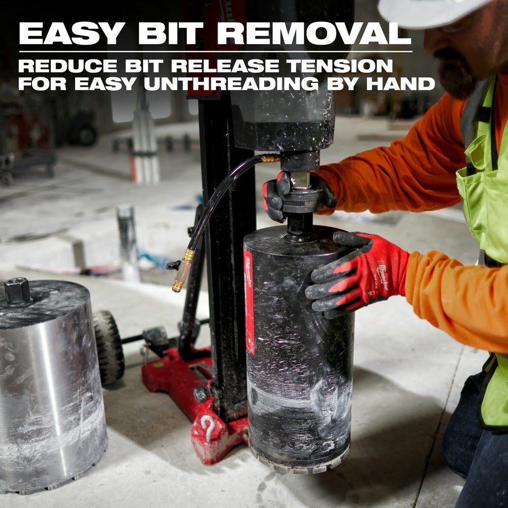 The MILWAUKEE MX FUEL Core Rig w/ Stand delivers unmatched productivity with the power to core up to 14” holes in reinforced concrete, the easiest coring anywhere, and four 10” holes through reinforced concrete per charge. The POWERSTATE Brushless Motor delivers the power to complete heavy-duty applications, coring up to 14” holes in reinforced concrete. REDLINK PLUS Intelligence ensures maximum performance and protection from overload, overheating, and over-discharge. The intuitive bit removal device, 3-piece modular design, and elimination of a cord maximize productivity, providing you with the easiest coring experience onsite. The MX FUEL Core Rig w/ Stand is kitted with two (2) MX FUEL REDLITHIUM FORGE HD12.0 batteries & a Super Charger. In just 65 minutes, you can charge an MX FUEL REDLITHIUM FORGE HD12.0 to 100%. Both the MX FUEL REDLITHIUM FORGE HD12.0 Battery & MX FUEL Super Charger are COOL-CYCLE Capable. COOL-CYCLE Active Cooling System provides high-speed cooling for less downtime. The active cooling feature works with MX batteries that have COOL-CYCLE capability. The core rig is compatible with all MX FUEL REDLITHIUM batteries, giving you the hardest working and most reliable power for equipment. The MILWAUKEE MX FUEL Core Rig w/ Stand is ONE-KEY compatible so you can track, manage, and secure your equipment.