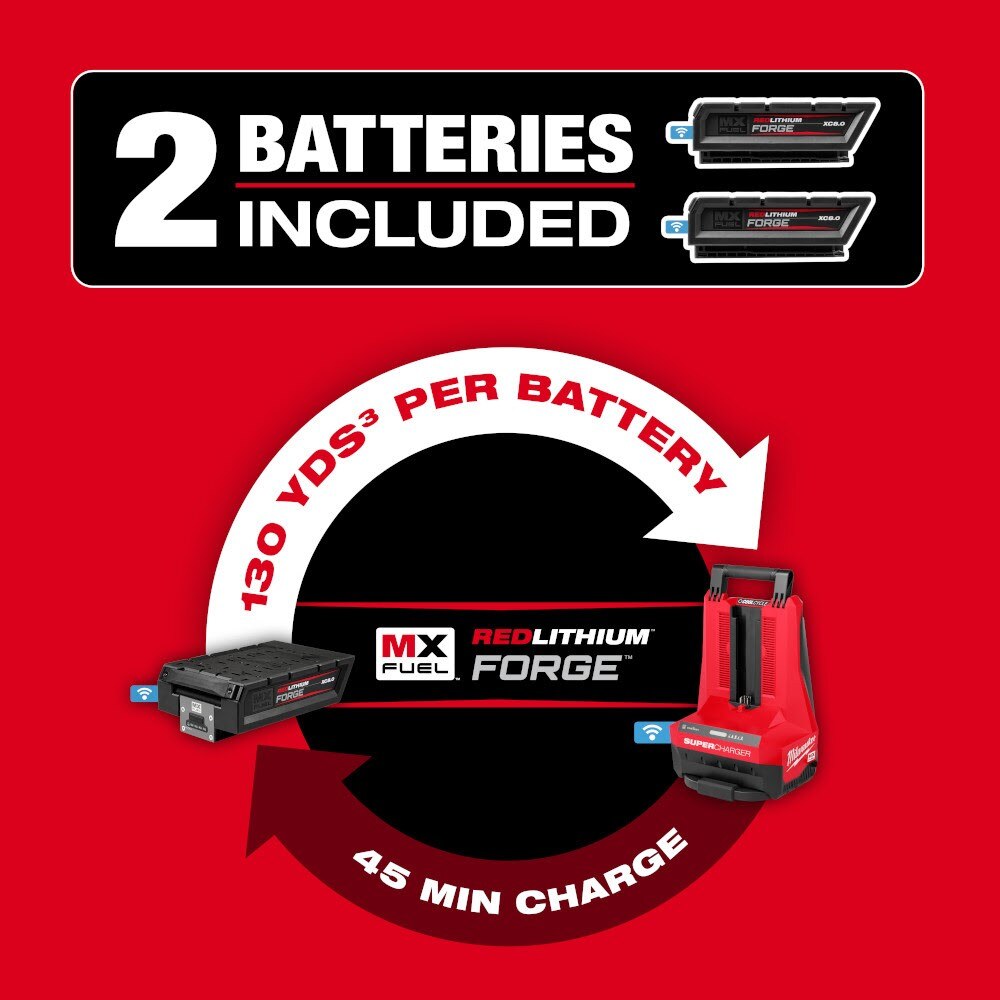 - Includes: (1) MX FUEL High Cycle Concrete Vibrator, (2) MX FUEL REDLITHIUM 8.0 Batteries, (1) MX FUEL Supercharger and Remote