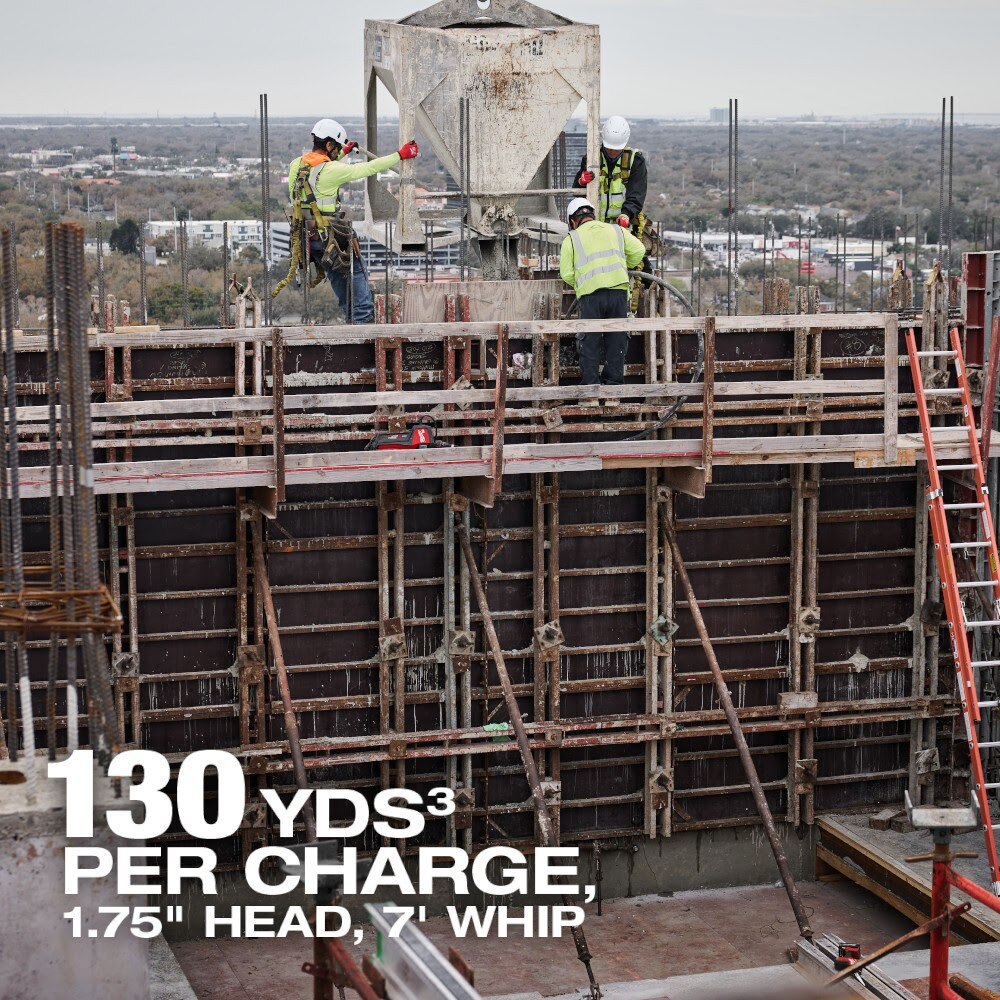 The MILWAUKEE MX FUEL High Cycle Concrete Vibrator delivers the most powerful, consistent consolidation. The POWERSTATE Brushless Motor delivers the power to push up to 2-1/4” head at 11,500 VPM for optimal consolidation, even in the stiffest concrete. The MX FUEL REDLITHIUM battery pack provides instant power without the need to run dedicated generators and extension cords giving you the fastest setup and a safer workspace. The push-button start delivers instant power giving you the reliability you need for pours. The MX FUEL High Cycle Concrete Vibrator consolidates up to 90 yds³ per charge with a 1-3/4" head & 7' whip and can accept whips up to 32 ft long, without sacrificing power or runtime. The wireless remote gives you the ability to turn the machine on from up to 30 feet away from the vibratory control unit, giving you more freedom when using long whips. REDLINK PLUS Intelligence ensures optimal performance and provides overload protection to protect your machine and battery during the toughest applications. The MX FUEL High Cycle Concrete Vibrator is compatible with all MX FUEL REDLITHIUM batteries, giving you the hardest working and most reliable power for equipment. The MX FUEL High Cycle Concrete Vibrator is also ONE-KEY Compatible. You can track, manage, and secure your equipment from your mobile device or computer using the industry’s largest Bluetooth community tracking network.