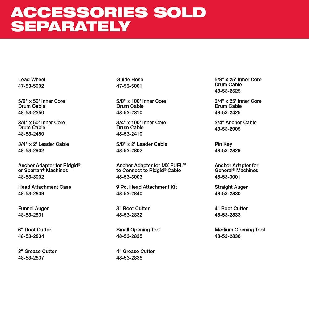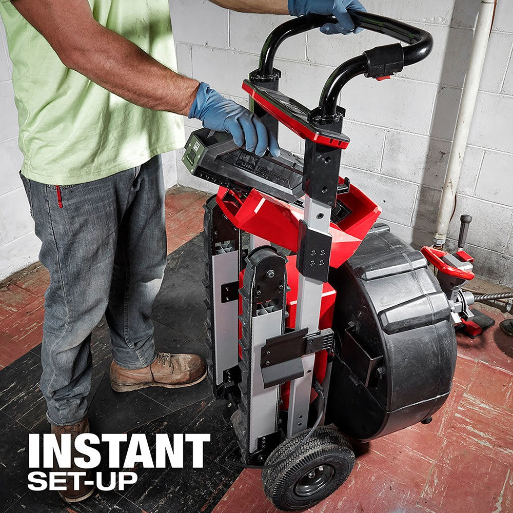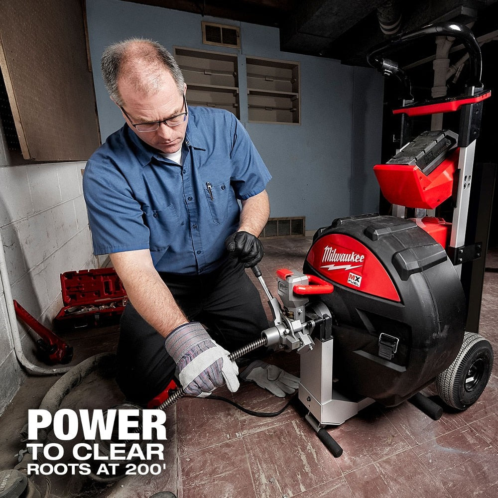The MILWAUKEE® MX FUEL™ Sewer Drum Machine simplifies sewer calls by providing the power to clear roots at 200 ft out, containing the mess with a fully closed drum, and cordless power for instant setup. The POWERSTATE™ Brushless Motor delivers the power to clear roots up to 200 ft out in 3"-8” sewer lateral lines. This provides full power at the maximum capacity of the machine. The drum is fully enclosed providing the best protection against the mess. The sewer machine features CABLE-DRIVE™ Automatic Feed & Retract, which reduces fatigue by eliminating the need to pull back the cable from the pipe. The RAPID STOP™ button quickly releases the CABLE DRIVE™ bearings to prevent the cable from binding. REDLINK PLUS™ intelligence improves control with an integrated drum brake, slowing the power sewer machine faster than competitor drums. The MX FUEL™ REDLITHIUM™ battery pack powers through multiple jobs on a single charge, delivering cordless mobility, safety, and power supply to the drain cleaning industry. It is compatible with all Milwaukee MX FUEL™ REDLITHIUM™ batteries delivering the hardest working and most reliable power for equipment. The drum sewer machine is ONE-KEY™ Compatible. Track, manage and secure equipment from mobile devices or computers using the industry’s largest Bluetooth® community tracking network. If the sewer machine is lost or stolen, prevent tampering with remote lockout capability.
