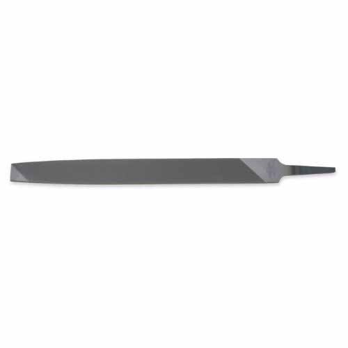 Fine long angle lathe file, 12 inches/300 mm. Specially designed for the finishing of rapid stock removal on lathe work. Both edges are safe or uncut. Cuts faster than regular mill files and leaves a smoother finish.