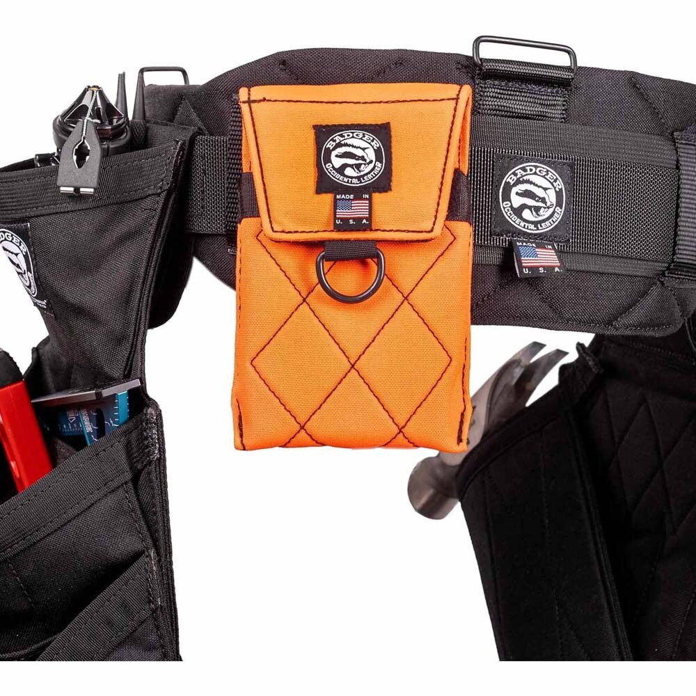 The Badger Phone Holster in Gunmetal by Occidental Leather is a rugged, padded phone case designed to protect your phone on the job site. Made from durable 1000d nylon, it offers reliable protection from scratches and debris while ensuring easy access to your device.