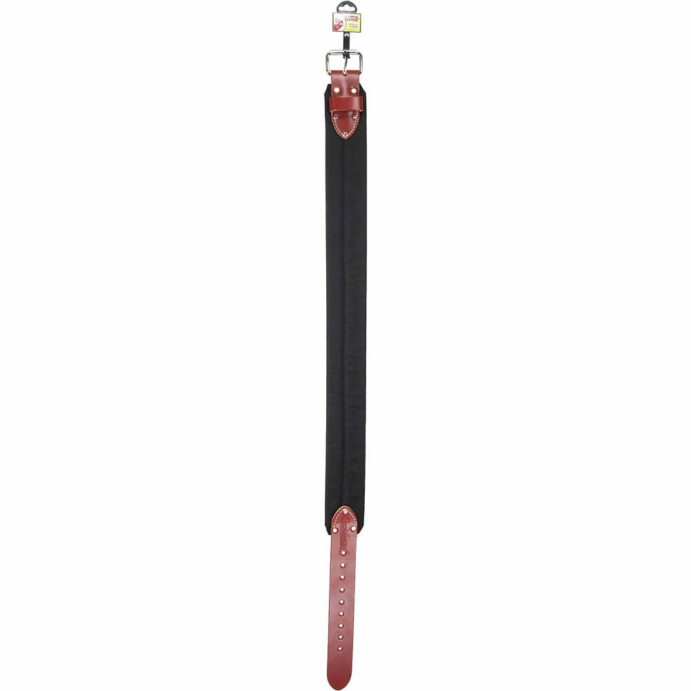 - Extremely Comfortable 3” wide padded Industrial nylon work belt with a heavy 2” leather tongue and nickel plated steel roller buckle.