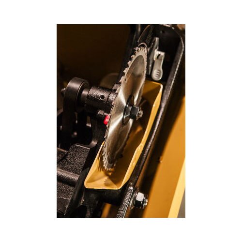 Recommended Circuit Size (Amps.) | 20The award winning PM2000B table saw sets a new standard for innovation with an array of patented features and massive body design. The cast iron tables are oversized, and the newly designed arbor lock lever is accessible from above the table top to eliminate the need for dual arbor wrenches. The quick-release riving knife design helps reduce the chance of kickback. The blade tilt scale features an integrated digital read out as well as adjustable angle indicators for repetitive bevel cuts. The newly designed integrated retractable hydraulic caster system mobilizes your table saw much higher than the previous model to assist when moving over thresholds. A wide stance, heavy-duty box trunnion and concave teeth on the trunnion gears promote easier raising and tilting of saw blade. Poly-V drive belt system results in quieter, more efficient power transfer from the motor to the arbor with virtually no vibration and less heat build-up. Improved built-in dust collection port with convenient access to the inside of the saw cabinet for simple clean-up. The saw has a proprietary safety switch with magnetic interlock and the stop button can be knee activated. |