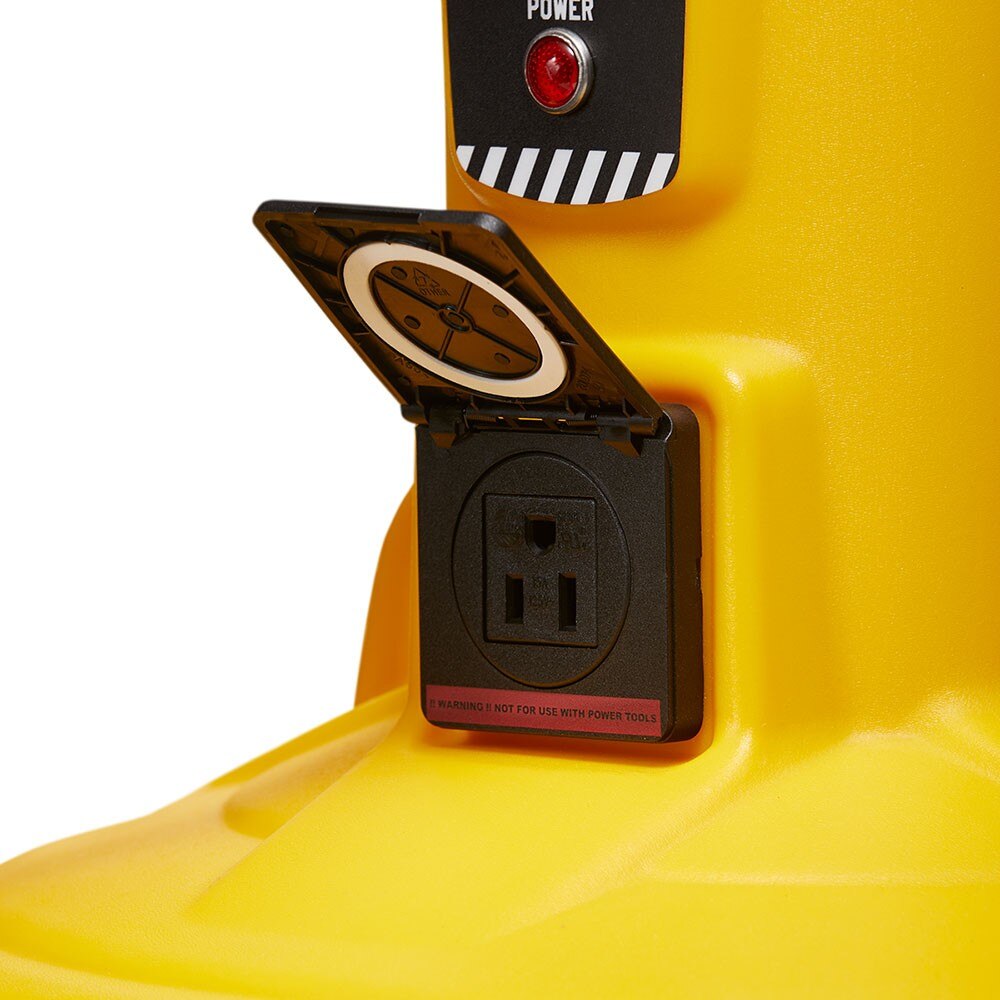 The all new Wobblelight® V2 LED has the same great patented self-righting technology, 12,000 Lumens, a covered receptacle for interlinking up to 6 units and an IP54 rating for damp location use. Still ideal for applications requiring temporary high output lighting for areas up to 60 feet in diameter. This new look features an integrated carry handle into the body, LED panel technology and a 5’ integrated cord.