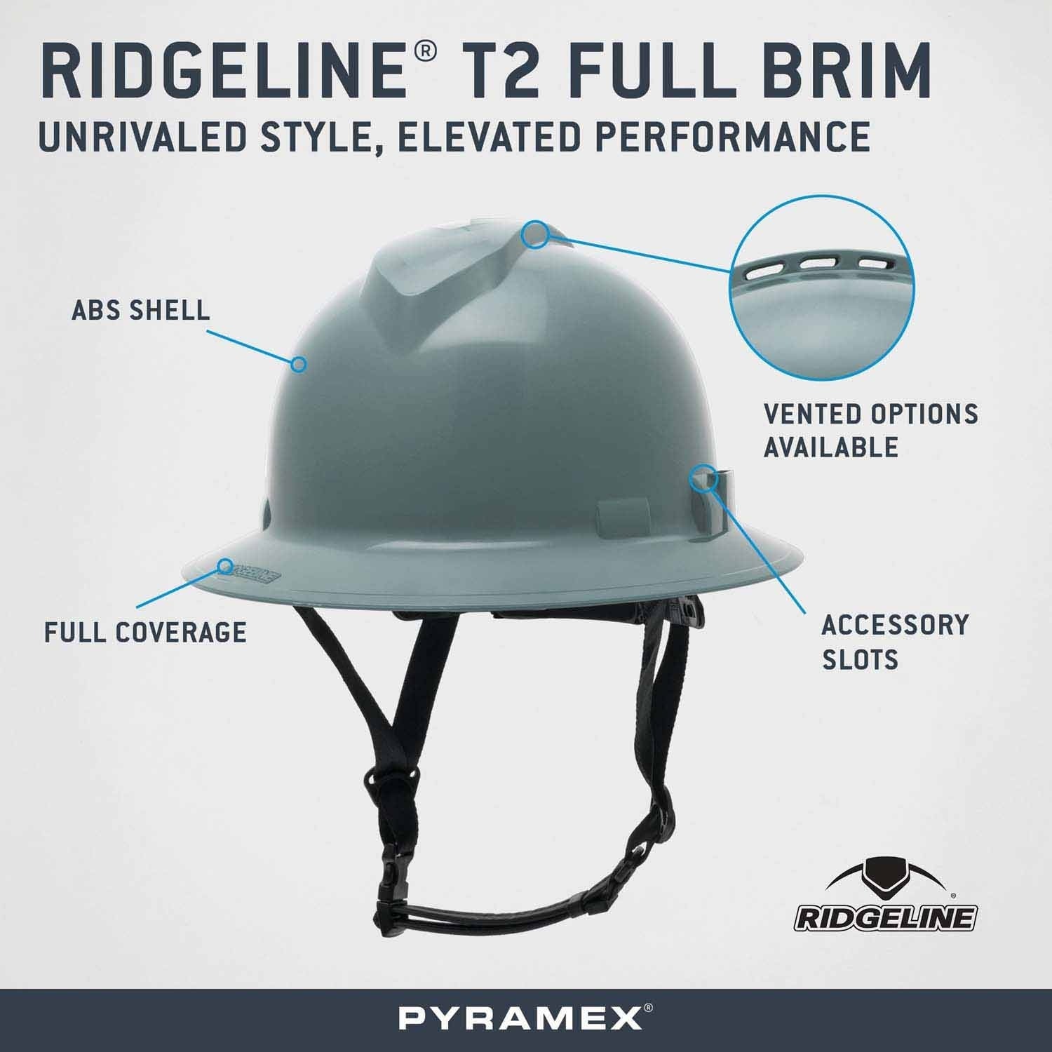Pyramex HPT256113 Ridgeline T2 Full Brim Hard Hat - Slate Gray - 6pt Ratchet Suspension