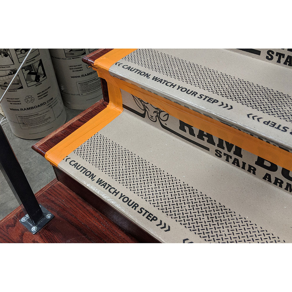 Introducing the industry's first paperboard stair protection product. Made with heavy-duty Ram Board, adjustable tread sizing, bull-nose protection, and Spill Guard™ Technology, Stair Armor™ is the absolute end-all of stair protection.