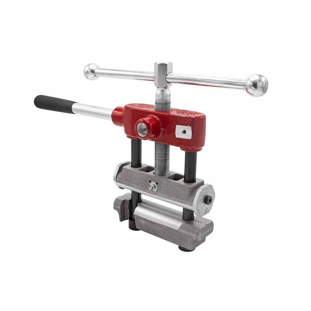 Sliding bar handles on these manual squeeze tools make work in tight places easier and increase leverage for tightening. Fine-pitched thread on feed screw allows for a controlled, low-effort squeeze. Grease fittings at friction points make operation smoother and extend tool life. Aluminum bars are anodized or painted for protection from the elements. All PE squeeze tools use positive stops to prevent damage caused by over-clamping. Multiple size/SDR settings on one pair of stops provide quick, convenient over-squeeze protection for standard pipe sizes.