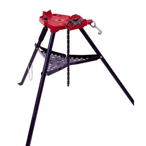 Reed Tripod Vises are among the strongest pipe vises available. They are manufactured with heavy gauge steel, overlapping hinges, and the best adjustable tray clamp, not a set screw, to keep the lower tray assembly and entire portable workbench tight - even after many hours of use. The heavy-duty design permits use with pipe up to 6” diameter. Tripods fold into a compact shape, have a padded handle grip at the balance point, and boast the lightest weight for the easiest portability of all well-known tripods. R470+ offers the same great features as Reed’s R450+, but R470+ provides a 60 percent larger top tray and a 45° cranking handle. All Reed tripod vises offer double-sided, patented “bowtie jaws” for 15% extra value versus purchase of a second jaw set. Reverse the jaws for an extra face and save the cost of buying a replacement set as soon. Exclusive double-faced jaws on the R450P, R470P and R470PAL offer one neoprene side for plastic pipe/soft metals and the other regular jaw for metal pipe. Neoprene jaws provide protection against damaging plastic pipe and soft metal pipe. Jaws are easily rotated from plastic pipe to metal pipe position to protect against damage and to maximize productivity. R40+ yoke vise with 2 ½” pipe capacity is built on the same, sturdy tripod vise platform. Double-sided jaws allow for reversal before replacement. Ask for Reed/RIDGID® brand interchangeable parts list for RIDGID® brand 460 and 40.