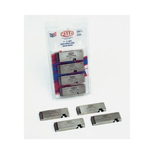 Reed used its 110+ years of die-making experience to select the best materials, methods, and CNC production for its Universal Dies. These dies fit Reed's 5301PD power drive, RIDGID® 300, 300 Compact, 535, 535 Automatic, 1215, 1822-I, 1224 plus the Reed R811 Universal Die Head. Choose from Reed’s full line of High Speed Steel (HSS) universal dies in geometries for NPT, NPSM and BSPT. HSS dies last longer than alloy dies because HSS universal dies withstand high temperature without losing hardness. This feature allows them to cut faster than the alloy at room temperature. RIDGID® is a registered trademark of Ridgid, Inc. and is not associated with Reed Manufacturing Company.