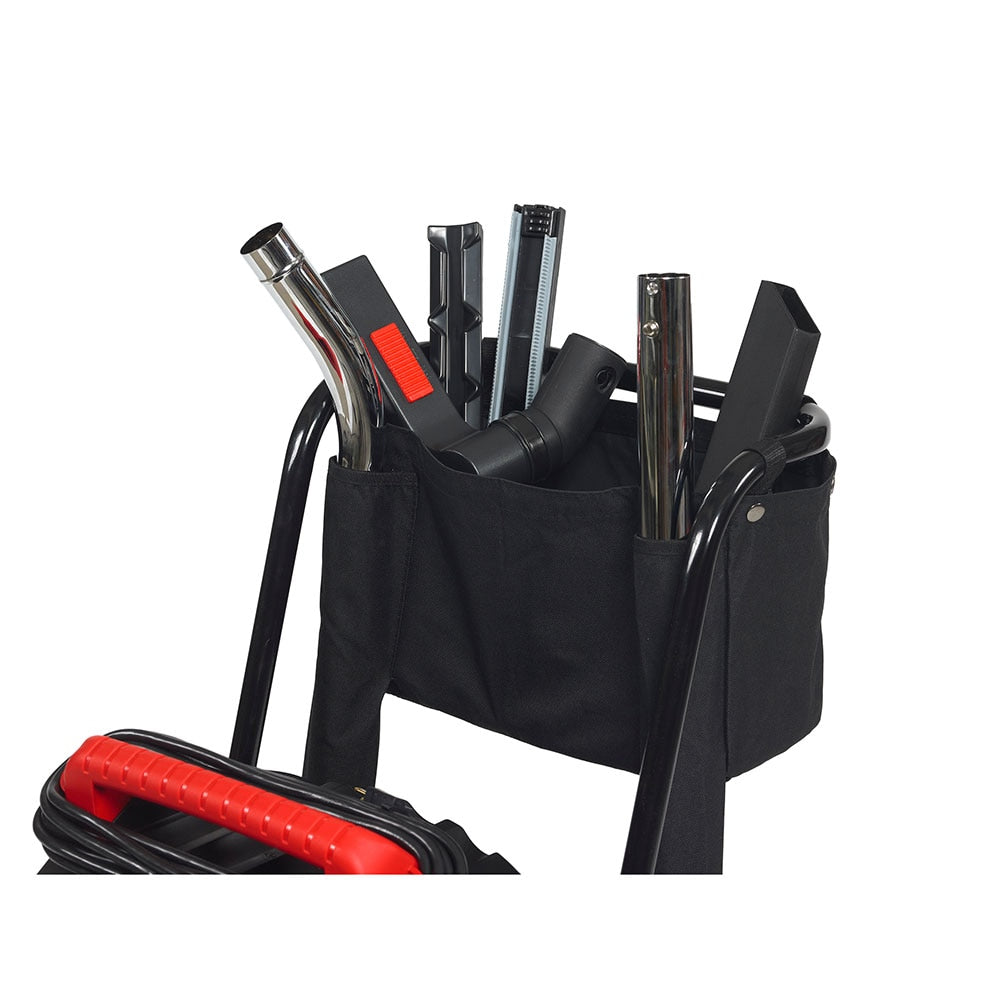 - Sturdy Cart, Push Handle & Large Non-Marring Wheels - These features act together to allow the vac to travel easily up/down stairs and over rough terrain.