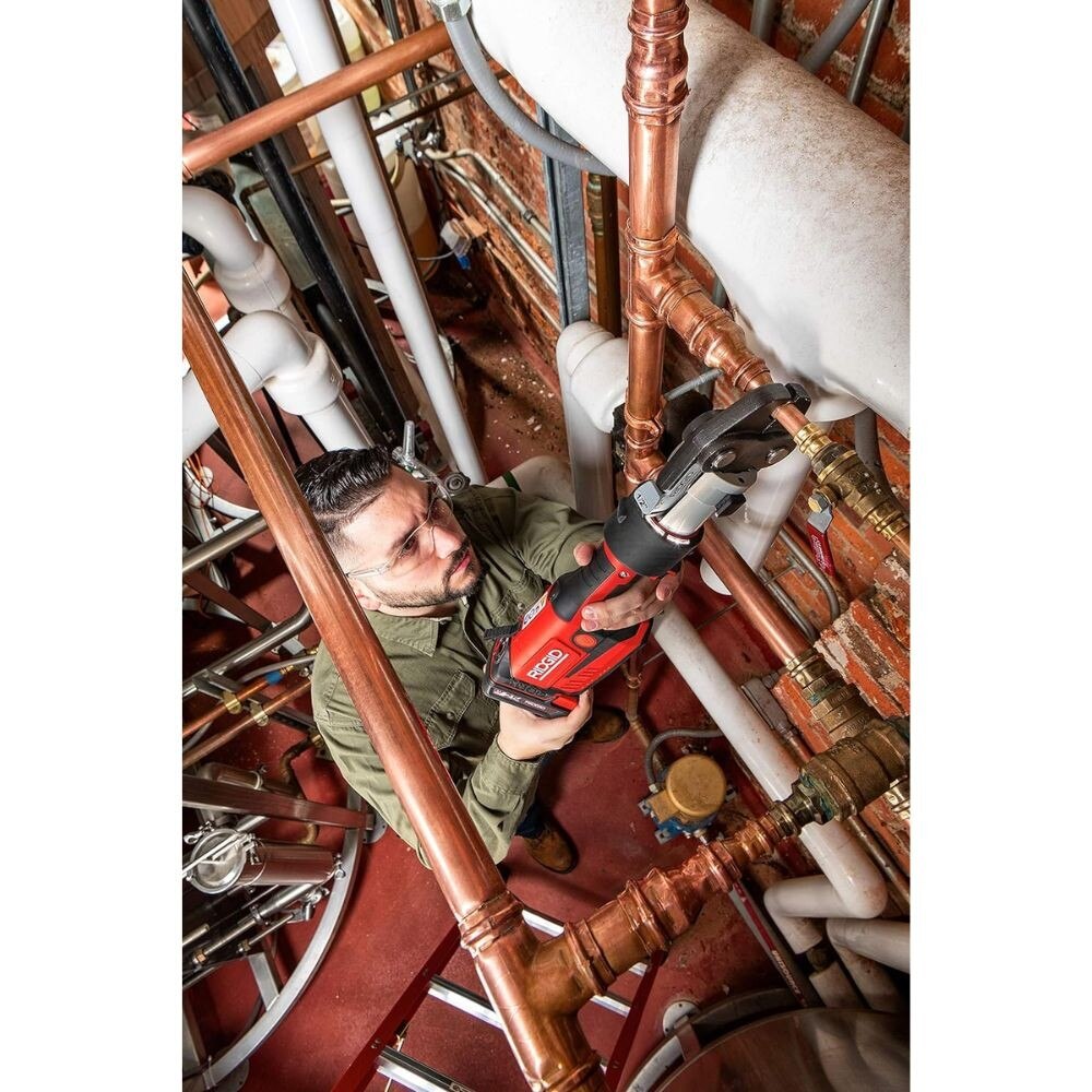 The RIDGID RP 351 is our first in-line Standard Series Press Tool. It features a brushless motor that is capable of over 100,000 press cycles and requires no scheduled maintenance. Get access to hard-to-reach locations with endless 360° swivel. It has the most advanced color-coded status indicators and LED lighting to provide real-time information and visibility in no-light applications. The RP 351 and it's drill-grip counterpart, the RP 350, are the only press tools in the industry compatible with all RIDGID Standard Series jaws, rings, actuators, and attachments.