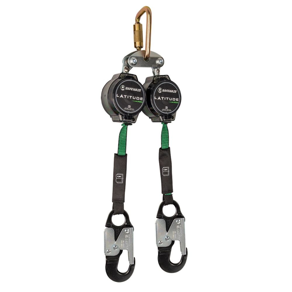 The Latitude Pro 7' Dual Web Self Retracting Lifeline is built with a revolutionary braking system that increases dependability and eliminates the external shock pack. It features a semi-sealed assembly to protect the internal components and unique translucent housing for easy inspection.