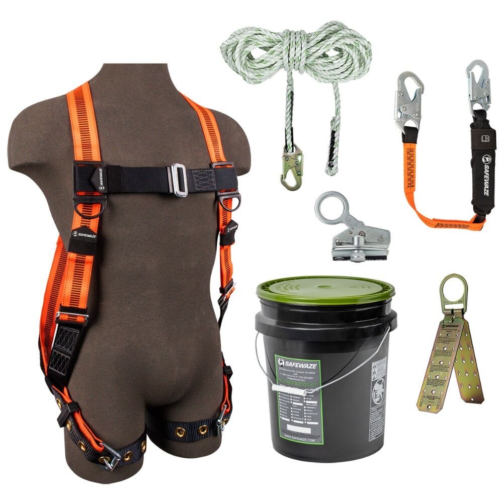 Safewaze 020-3130 V-Line Bucket Roof Kit: FS99185-E Harness, FS700-50 VLL, FS1118-DC Grab, FS88560-E3 Lanyard, FS870 Anchor