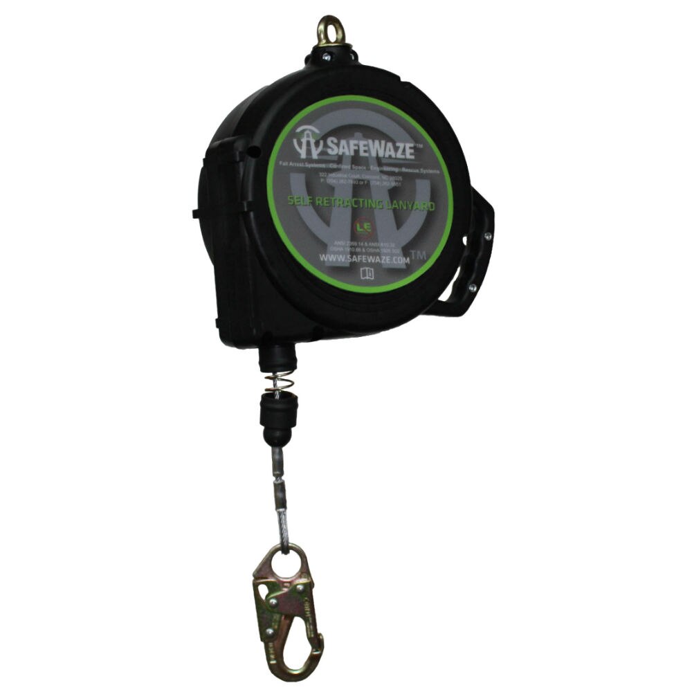 The Safewaze FS-EX10-100-G is a Class B 100' cable; poly housing retractable lifeline with a mobility enhancing swivel top, fall indicator and gate rated carabiner included. The unit's impact resistance housing encoded in non-corrosive components ensures extended usage and performance.