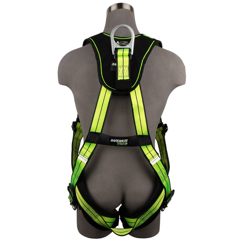 The PRO+ Harness is our all-steel premium harness, combining innovation with functionality. High-vis abrasion resistant green webbing and advanced technical padding, composed of moisture wicking linings and closed cell foam, provide all-day ease of use and extended product life. Models equipped with dorsal SRL link, corrosive resistant steel-plated D-rings, quick-connect buckles and aluminum torso adjusters. Offered in a variety of configurations.