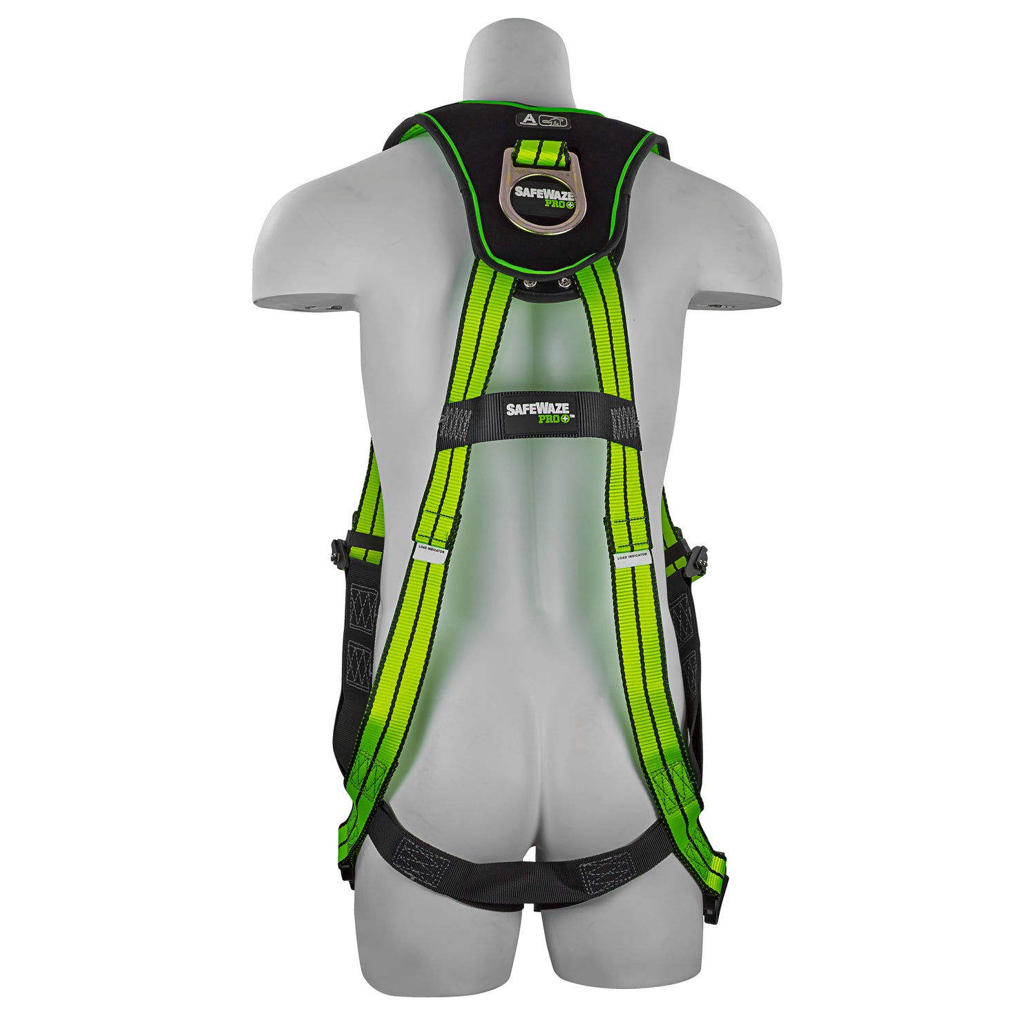 The SafeWaze Pro+ Flex Premium Vest Harness utilizes Flex webbing in a memory fit design, with quick release connection buckles, which enables harness fitting memory between usage. Impact absorbing shoulder pads feature reflective piping and intelligent cell foam. This an ideal choice for many trades when constant off and on usage is required.