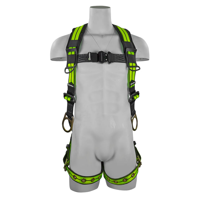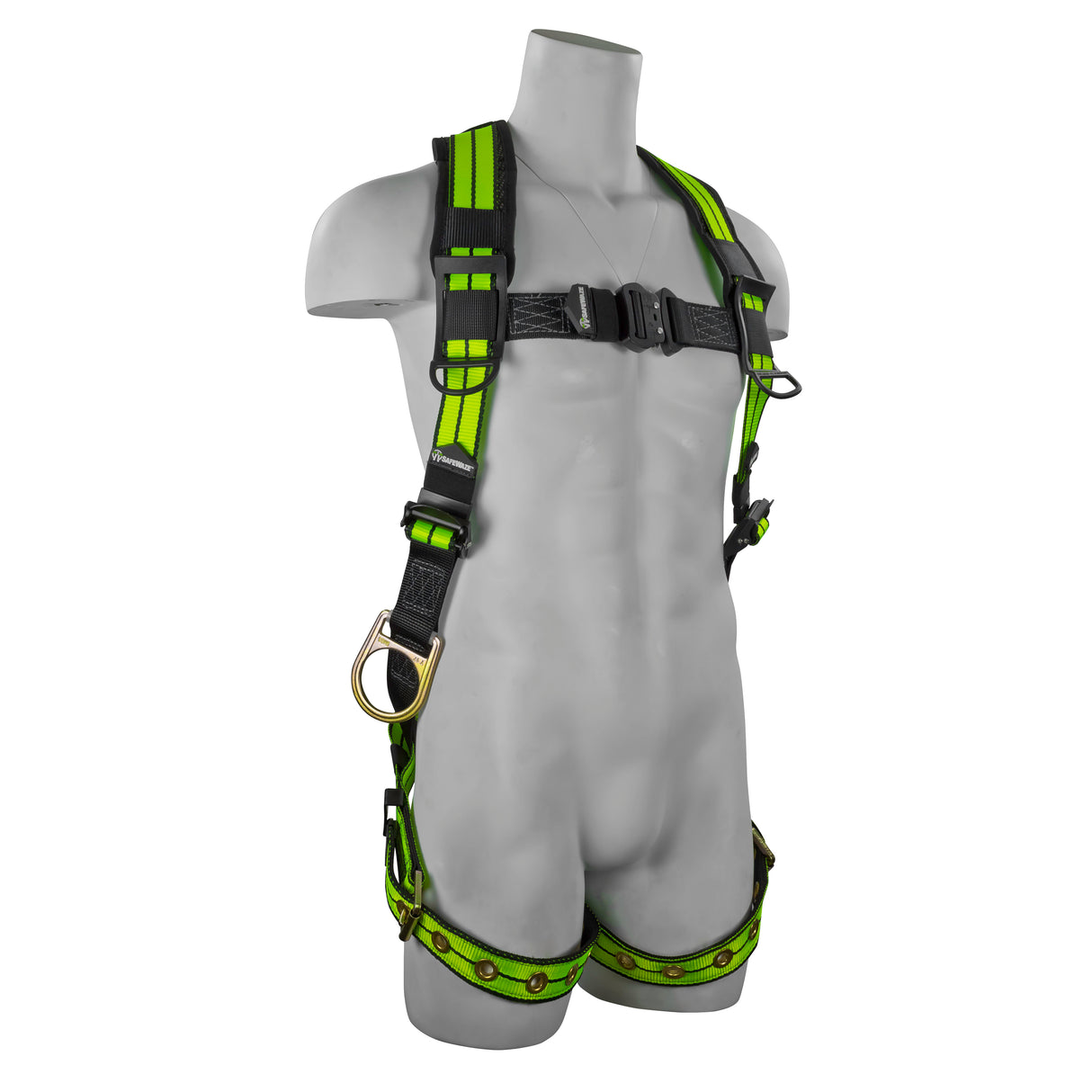 The Safewaze Pro+ Flex Premium Vest Harness utilizes Flex webbing in a memory fit design, with quick release connection buckles, which enables harness fitting memory between usage. Impact absorbing shoulder pads feature reflective piping and intelligent cell foam. This an ideal choice for many trades when constant off and on usage is required.