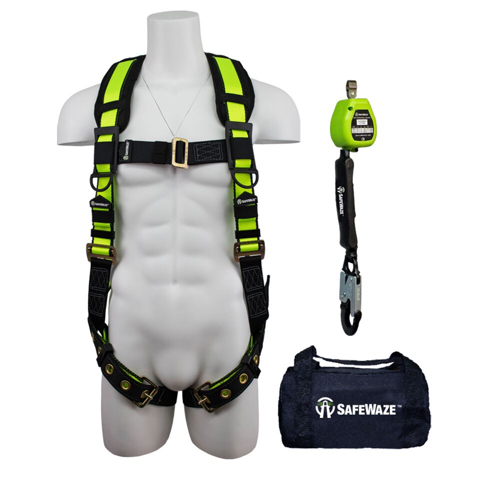 The SafeWaze Pro FS143 Fall Protection Kit includes a grommet leg harness (FS185) and 7? web SRL (018-5009) packaged in a convenient zip up carry bag.